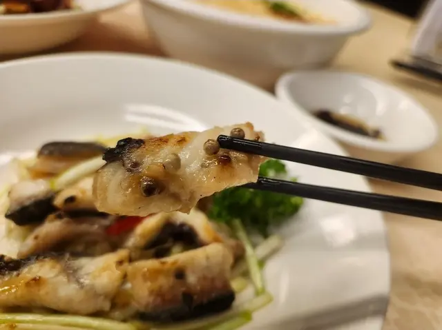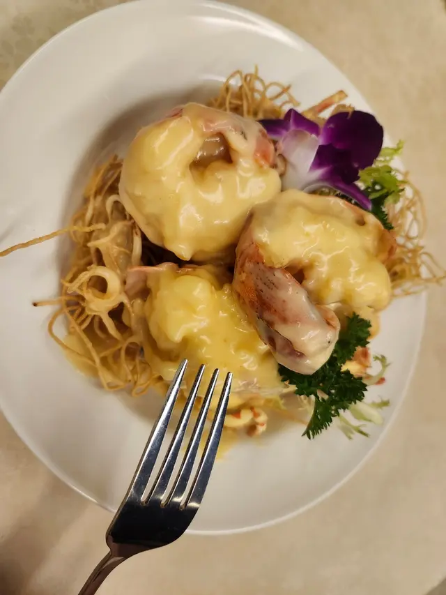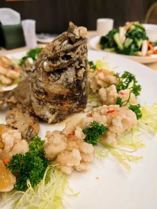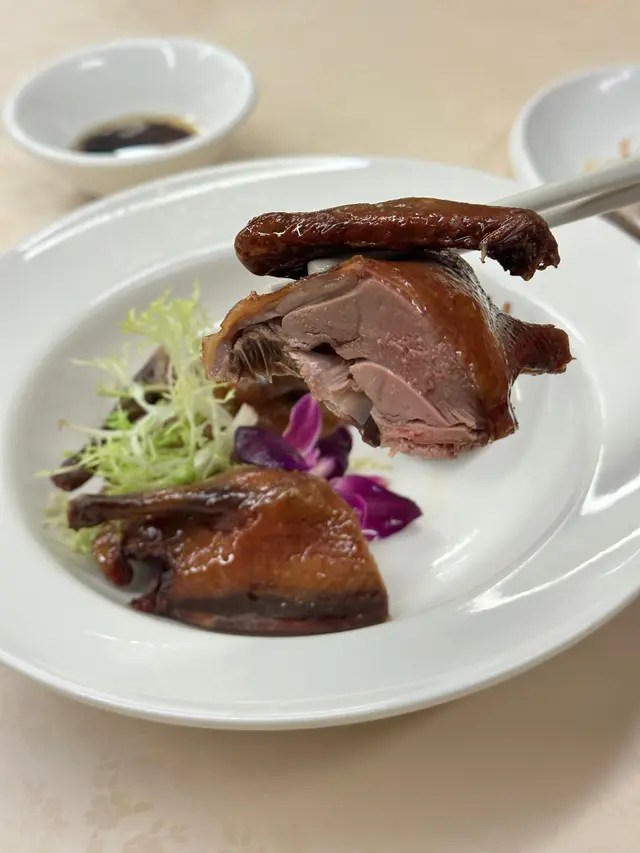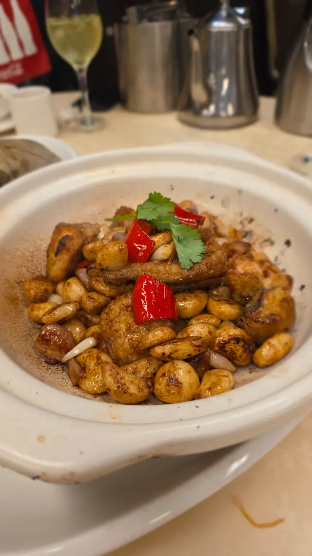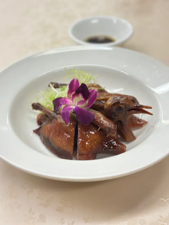 這間擁有13年歷史的私房菜位於觀塘敬運工業大廈,主打手工粵式海鮮料理,由經驗豐富的主廚掌舵,每道菜均用心烹調,堅持選用每日新鮮到貨的生猛游水海鮮—「不時不食」,明碼實價且價錢相宜。店內環境寬敞舒適,裝潢採用中式為主,牆上張貼不少影視名人曾光顧的合照。晚市時段設有二至十二人套餐,豐儉由人,更可按預算及口味設計菜單,小朋友不強制計人頭,可另加小菜或飯麵,適合家庭聚會、公司晚宴及團年春茗等。全日免開瓶費、免切餅費及免加一,自備酒水更可提供冰桶、酒杯及食用冰;代蒸壽桃包亦免費;完成指定任務可免費換汽水。兩位用設計菜單 - $1180滷水鵝肝鵝腎(慶祝生日送,不限正日)鵝肝在滷水中慢燉入味,粉潤細緻好綿密,入口有微微化開,有濃郁的鵝肝香氣;鵝腎保持煙韌有勁,兩者均充滿滷水香料的風味。脆皮玻璃乳鴿1隻採用炸子雞方式,重複以油澆淋上乳鴿身,外皮烤得薄如蟬翼,色澤金紅油亮,薄脆不膩,裡面的鴿肉卻依舊嫩滑多汁,帶著淡淡的鹹香與脂香,越嚼越香。白胡椒韭黃炒鱔柳(例牌)全新菜色,一片片鱔柳結實彈牙有嚼勁,處理得極為乾淨而不腥,大火爆炒帶有鍋氣與焦香,自家研磨白胡椒的香氣更濃鬱立體,韭黃鮮嫩多汁,鹹鮮中帶著微微辛香。芝士龍蝦(12兩)肥美飽滿的龍蝦緊密有嚼勁富彈性,鎖住豐富的肉汁好鮮甜,金黃色的芝士有微微拉絲,完美融合醇厚香濃。蒜蓉粉絲蒸大元貝(2隻)大元貝的貝肉碩大飽滿,質地緊實彈嫩,充滿著鮮甜的汁水,蒜蓉的香氣完全釋放,粉絲吸飽了蒜蓉醬汁與貝肉的鮮汁,軟糯入味且鮮香十足。士多啤梨骨排骨炸得外酥內嫩,肉質軟腍多汁而不柴,均勻裹上酸甜的士多啤梨醬汁,不僅中和排骨的油膩感,還增添了果香的清爽,甜而不膩、酸而不澀。蒜蓉炒時菜新鮮翠綠的小棠菜纖維細緻,清脆帶有甜味。蟹油銀芽炒麵麵條炒得乾爽彈牙,有蟹油獨特而濃郁的鮮香,銀芽脆嫩爽口增添層次感,鮮香十足又不油膩。抹茶奶凍質地細膩嫩滑得入口即化,清香淡雅的抹茶帶微微的甘醇,甜度剛好而不膩,奶香味與抹茶味平衡得恰到好處,撒上酸甜有嚼勁的無花果乾,清爽解膩。…查看更多