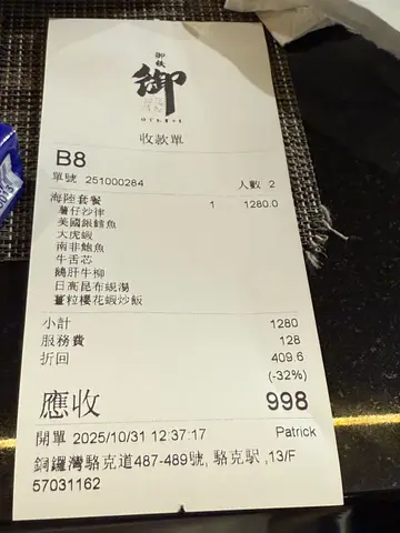 銅鑼灣這間日式鐵板燒提供多款套裝,材料新鮮,性價比不錯,最近還推出期間限定優惠,提早預約可享85折!以日式鐵板餐來說確實吸引👍🏼海陸套餐($1280/ 2人前)日式薯仔沙律冰涼的薯仔質地幼滑,入面還有青瓜及蘿蔔絲,配上沙律醬,令胃口打開美國銀鱈魚師傅控制火喉得宜,鱈魚肉質滑嫩,煎到外脆內嫩,魚油香濃💕澳洲青龍蝦配龍蝦膏牛油汁(+$300)選用鮮活澳洲花龍蝦,十分生猛!龍蝦肉彈牙,師傅將龍蝦膏及牛油汁調配得香濃,每件龍蝦肉都掛上蝦膏精華,味道咸香,很惹味南非鮑魚來自南非的孔雀鮑魚,肉質爽口帶嚼勁,配以牛油及鹽粒調味,而海苔忌廉汁則帶少少海味同奶香,兩者令鮑魚整體味道再提升⬆️牛舌芯牛舌芯厚身得來口感焦香爽彈,牛的油脂濃郁,外面微微焦香👍🏼香煎鵝肝配紐西蘭牛柳鵝肝香脆,牛柳嫩滑,無花果黑醋汁既酸甜平衡左油膩感同增添果香,令層次更豐富。鹿兒島和牛薄燒(+$150)色澤嫰紅的A4和牛,入口軟嫰,牛味香濃🤍不得不讚揚師傅火喉控制得好好👏🏽同時,牛肉包著大量蔥花,能減低油膩感。昆布白蜆湯用了剛剛的龍蝦頭去烹調,味道清甜,用了昆布令鮮味更突出薑粒櫻花蝦炒飯很有鑊氣🔥米飯炒得粒粒分明,加入薑粒去提升香味,另外亦加了櫻花蝦,令炒飯更有口感抹茶雪糕很有心思的生日蛋糕,碟上畫了可愛的公仔🩵抹茶味濃郁,份量剛剛好,很完滿…查看更多