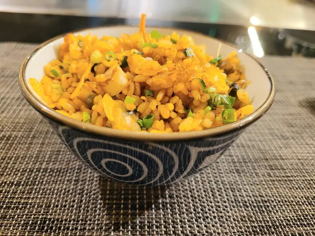 昆布蜆湯,湯底清甜,昆布嘅鮮味同蜆嘅鮮香完美融合,飲落暖胃又舒服。蜆肉肥美,湯頭清而不淡,係一道好有心思嘅結尾湯品。海膽海鮮炒飯 🍚4.7/5 ⭐️