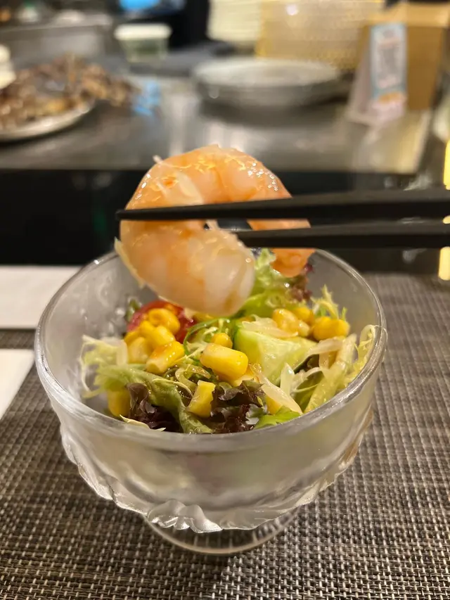 首先上場係西栖蝦沙律,清新嘅開胃菜!西栖蝦爽口彈牙,配上新鮮雜菜同酸甜嘅西栖汁,味道清爽又唔會太重,完美為今晚嘅鐵板燒之旅揭開序幕!活龍蝦🦞4.7/5 ⭐️