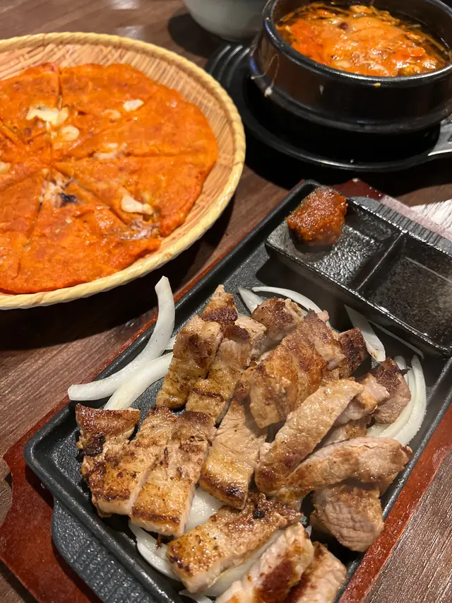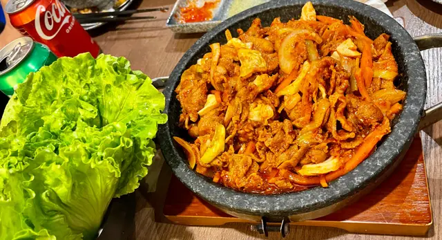 7點半上到去已full house 就算book左都要等一陣 好得意啲侍應吾係韓國人又吾係香港人 落單係自己寫係本簿度之後俾佢地我地back and forth都加左幾次單但佢地都好nice一上枱真係小嚇左一下個份量好大 不過‼️似乎吾係用全雞 因為淨係得小雞髀同雞翼 好特別 好似係第一次食到咁嘅韓式炸雞🤣 味道幾好👍🏻Order個陣以為辣湯燉 估吾係呢種形式 味道好鮮好夠味 擺盤同青瓜相間好靚 仲可以去下膩🥒 佢配埋芝麻油/鹽咁嘅sauce(可以留言話我知其實係咩醬)可以點 ✅ 記住要撈匀先點吾係就會太咸嫁喇…查看更多