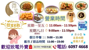 微茶 (深井) 網址: https://s.openrice.com/QrbS0L4CC00 地址: 香港深井青山公路-深井段41-63號深井村55號地舖 電話: +852 60974668