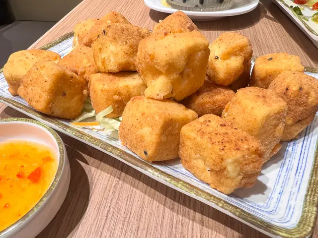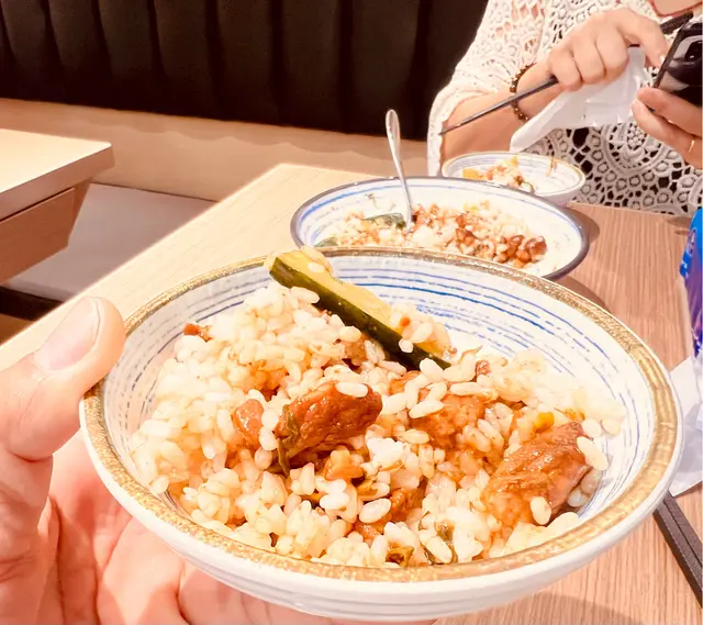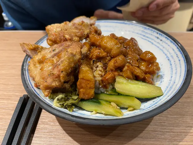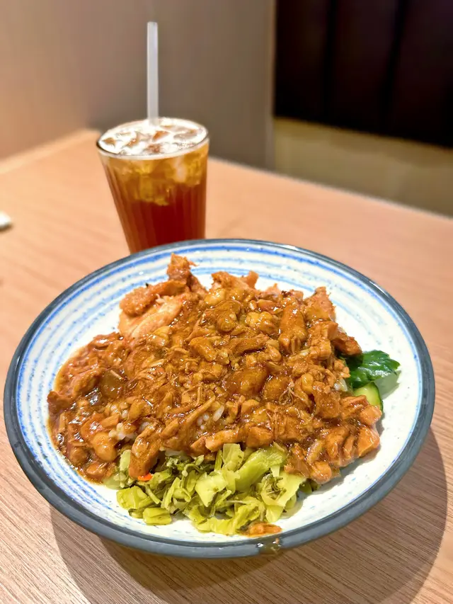 朋友介紹這間街坊小店又去試下,晚餐有很多選擇。掃碼下單。今晚來到室内位已滿,只好坐室外位,室外位都有屏障圍繞,有冷氣供應,所以也不太熱。凉瓜肉片跟飯和凍咖啡,餸和飯是分開上。凉瓜肉片分量一般,味道不錯,肉片嫩滑,每片凉瓜掛上汁液,没有苦味,爽口。唐揚鷄塊滷肉飯跟熱奶茶。這個就餸和飯放在大碗内同上。三件唐楊鷄炸得香脆,粉漿包裹剛剛好,鷄肉夠熱也嫩滑。滷肉切粒不是免治,可以吃到粒狀肉質,醬汁調味適當。酸瓜提升食慾。整個飯餐都不錯。熱奶茶茶味足,咖啡反而較淡。…查看更多