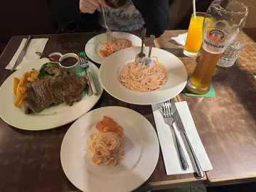 呢間元朗嘅德國餐廳真係好掂,食物質素高,但係價錢又唔貴,可以encore。先講呢個豬扒意粉,好少見呢啲幾十蚊嘅餐啲豬扒煎得咁好,真係煎到外層脆而入面啲肉又唔會韌,睇相就知塊豬扒都幾大塊,而且一碟竟然有兩塊豬扒,至於意粉就唔係白烚完就咁俾你,而係茄汁意粉。紅酒牛尾配薯菜份量足,你睇吓幅相入面幾多牛尾就知道,另外啲牛尾煮得夠林夠入味,係好食嘅。包埋餐湯同埋餐包,啲餐包仲要係一啲都唔求其,跟餐仲有飲品,粟米話唔超值。