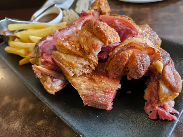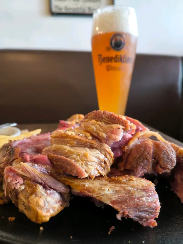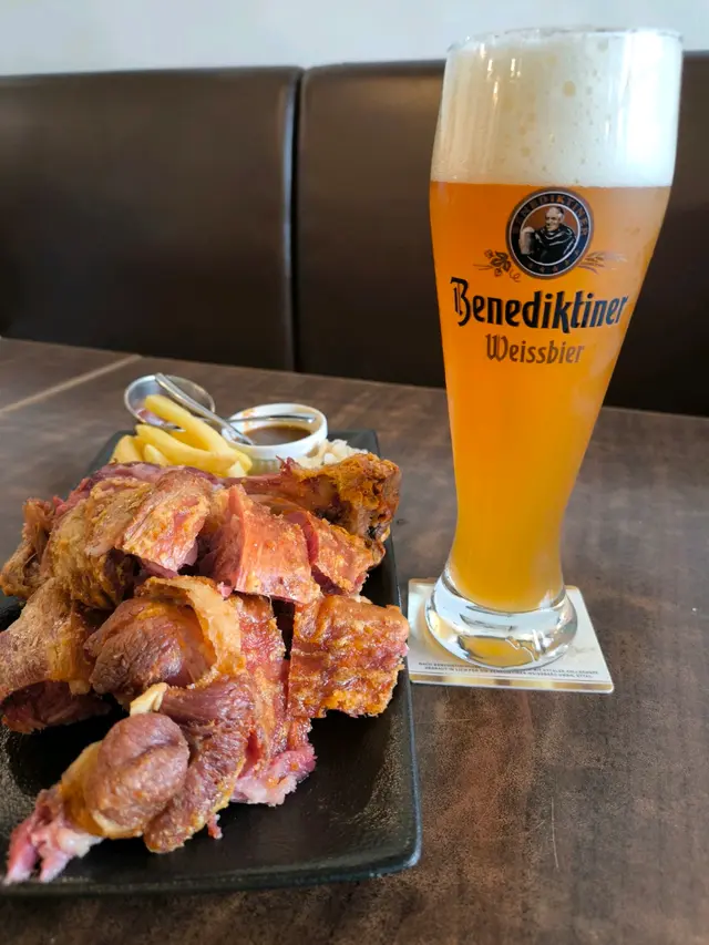 呢間元朗嘅德國餐廳真係好掂,食物質素高,但係價錢又唔貴,可以encore。先講呢個豬扒意粉,好少見呢啲幾十蚊嘅餐啲豬扒煎得咁好,真係煎到外層脆而入面啲肉又唔會韌,睇相就知塊豬扒都幾大塊,而且一碟竟然有兩塊豬扒,至於意粉就唔係白烚完就咁俾你,而係茄汁意粉。紅酒牛尾配薯菜份量足,你睇吓幅相入面幾多牛尾就知道,另外啲牛尾煮得夠林夠入味,係好食嘅。包埋餐湯同埋餐包,啲餐包仲要係一啲都唔求其,跟餐仲有飲品,粟米話唔超值。…查看更多