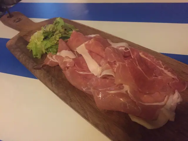 突然身痕想拎好姊妹Happy Hour 暢談一翻,來到了渡船角的德國菜小店,啤酒,德國香腸,Happy Hour,很對味呢~店面不大,就這樣放兩個餐牌在門口,不太顯眼,店內大概只有十張以內的餐檯,小店格局,甫坐下,店員便隨即遞上餐牌,先點啤酒目的是Happy Hour,當然先點啤酒了,一人一杯,分別是Furstenberg Hell和Hoegaarden Rosee,前者麥味較重帶點甜味,後者則是甜度強勁的紅桑子味道加上Hoegaarden獨有的花香,愛甜的女生應該很喜歡先來了意大利巴馬風乾火腿:份量蠻大的,亦不算太咸,每人大約有5-6片,而百多元來說算了不錯,去城市超級買也差不多價錢罷了德國香腸拼盆:啤酒+香腸+豬手=德國菜,至少我是這樣認為的,香腸絕對是很重要的一環,點了這個拼盆,有5條不同的香腸,其中比較特別的是芝士腸和羊肉腸,芝士腸咬開後有芝士緩緩流出,一口腸一口啤酒,很爽~另外有甜甜的HONEY MUSTARD SAUCE點,不錯德國咸豬手配酸菜及薯仔沙律:我自己本身不太愛吃豬手,最多會吃外面的皮,因為一般豬手的肉都比較乾和鞋,但友人很愛,那就試一試吧上檯時已經起骨加切好一件件,非常細心,份量仍然蠻大的,足夠3個人吃,豬皮炸得很脆,又不算很濃味,配啤酒真是一流,就當成是日式燒豬皮來吃吧,呵呵查看更多