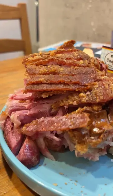 嚟緊10月有德國啤酒節,飛唔到去德國就梗係要搵返間德國餐廳,感受吓節日暢飲嘅氣氛啦🤪 呢間德國餐廳推出咗期間限定嘅慕尼黑盛宴menu,我哋就食咗佢哋嘅三款菜式 。威靈頓牛柳半價!$118就食到高質素嘅威靈頓牛柳啦🤩 上碟時已經切開咗,見到牛柳都幾粉嫩,咬落口質地實淨,亦都有好多肉汁🐮 香脆嘅酥皮包裹住蘑菇醬同埋牛柳,一啖食落口勁滿足🙈 德國啤酒節慕尼黑盛宴Platter勁豐富,啱晒飲住啤酒,同朋友share😋 最矚目嘅當然係原隻嘅德國鹹豬手啦,師傅已經幫我哋將香脆嘅豬手起骨再加切件,勁方便食啊🐷 紐倫堡蛇餅腸都係個人比較喜歡嘅德國食物,紐倫堡腸味道唔會太鹹。德式芥末籽香腸鹼水麵包棒 ,入面嘅脆皮腸配埋麵包味道唔錯,最有特色就係麵包嘅內層有一層芥末籽,更有風味🌭 另外有兩件德國傳統扭結包,麥味好香濃㗎🌾 拼盤仲有巴馬臣芝士粒、酸菜及薯仔沙律、酸瓜及橄欖🫒 2L德國生啤塔話明係德國啤酒節,梗係要嗌返啲生啤嚟慶祝啦🍻 呢個生啤塔有成2L,最特別嘅係裝啤酒嘅容器,係用碗裝㗎,有德國傳統文化特色🥣呢個份量夠晒3-4個人食,飲住啤酒大吃大喝就啱晒 。一齊投入德國啤酒節嘅狂歡氣氛啦🥳…查看更多