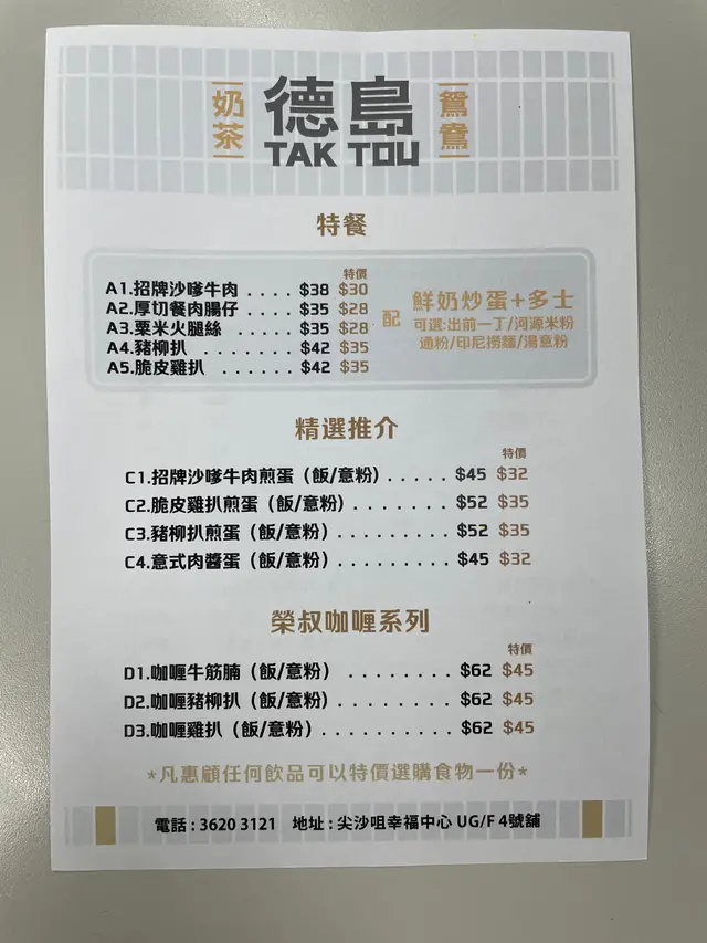 德島 (幸福中心) (尖沙咀) 網址: https://s.openrice.com/QrbS0MESC00 地址: 香港尖沙咀加連威老道92號幸福中心UG樓4號舖 電話: +852 36203121