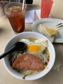 平時常路経過,從來冇幫襯過!今天晨早有約要赴,飢餓難頂,見到此店已經開門營業,開心不已呢早餐有中、西選擇,種類繁多,有選擇困難..選了雪菜肉絲湯米,凍〇茶,$34!原來尚有煎蛋,更再可選多一款 - 餐肉或火腿或煙肉...包括牛油麵包/多士...結果,雪菜肉絲,太陽蛋,餐肉,湯米粉,好豐盛呀...雪菜肉絲份量不少,雪菜不咸,肉絲好似樣,很嫩滑,零❄️味!太陽蛋係即做,剛煎好,新鮮熱辣辣,蛋邊仍香脆的,餐肉,煎得好香口,無過火,米粉係粗條,有咬口,湯底好淸,似無落味精!此店的辣椒油,好勁度,有水準!(要一提,載著辣椒油的瓶,整潔)此個早餐,簡直喜出望外,係用心去做的!查看更多