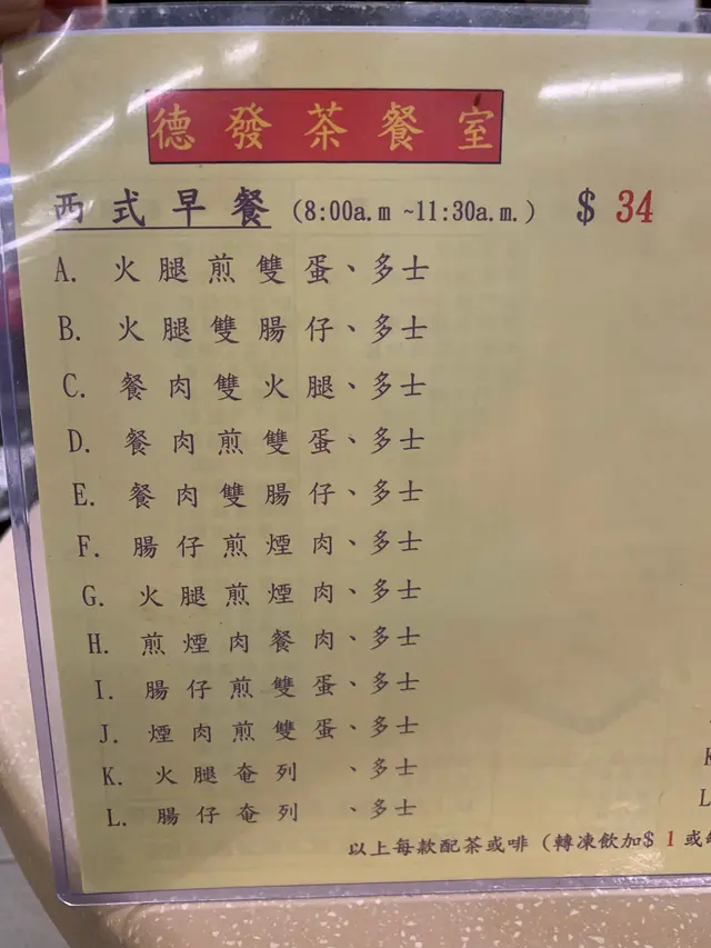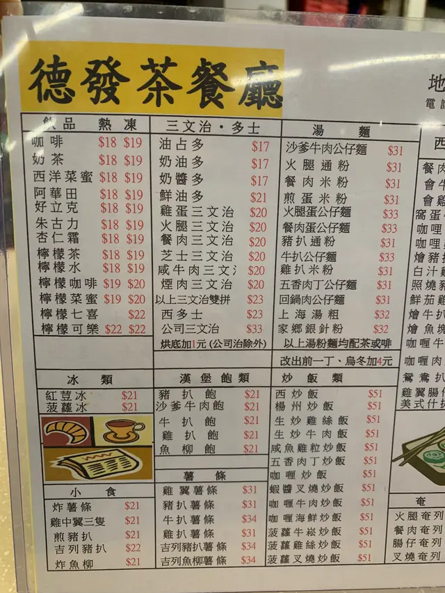 德發茶餐廳 (長沙灣) 網址: https://s.openrice.com/QrbS0usK000 地址: 香港長沙灣保安道325-329號保安道市政大廈3樓CF6號舖 電話: +852 92210788