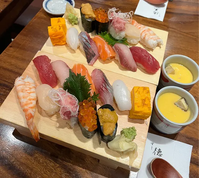 德美每日新鮮日本空運食材超新鮮,選擇夠多,而且高質性價比高,一直都食開尖沙咀間,今晚就試吓黃埔店!🏮就喺地鐵出口一轉彎即到! 👥【 豐盛二人套餐 💲498 】 《 日式前菜 》- 芝麻魚仔&枝豆~《 牛油果沙律 》🥗 - 料多微酸開胃~《 什錦刺身盛 🐟》 - 有三文魚、北海道甜蝦、帶子同油甘魚,厚切鮮味~ 《 什錦壽司盛 🍣》 - 有6件壽司加2件玉子燒~吞拿魚腩茸、北寄貝、三文魚、熟蝦、池魚、墨魚~《 芝士鰻魚卷 🍙》 - 芝士味太搶《 什錦天婦羅🍤》 - 有茄子、菇、番薯、蝦~《 鐵板牛舌 👅》 - 肉嫩彈牙~《 大蜆味噌湯 🍵》 - 蜆肉大粒鮮嫩~甜品 -(無送上🤣我地都唔記得咗~)➿➿➿➿另外散嗌:呢度亦出名重量級吞拿魚腩茸飯/足料魚生飯!今日就試下招牌《 德美海膽魚生丼 💲188 》有海膽、三文魚、池魚、油甘魚、蟹籽、三文魚籽、蝦、蟹柳&玉子,新鮮又豐富!《 牛油燒帶子串 🍢💲38 》 大粒唔韌 ~ 呢餐份量夠3人食,平均每人$2xx,抵食又美味~大滿足~ …查看更多