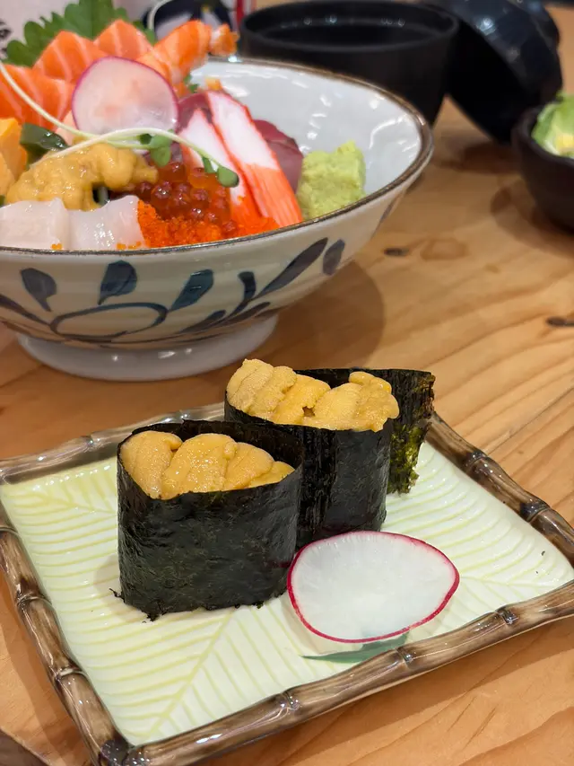 德美海膽魚生丼 $178德美海膽魚生丼好足料,有海膽、三文魚、油甘魚、玉子、帆立貝、蟹籽、飛魚籽。飯粒略微溫暖,突顯魚生的鮮甜感,配埋豉油,爽!