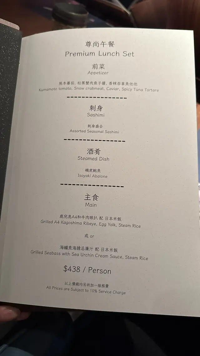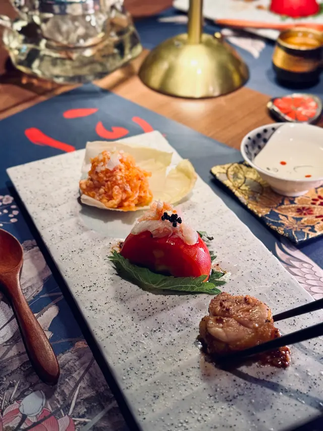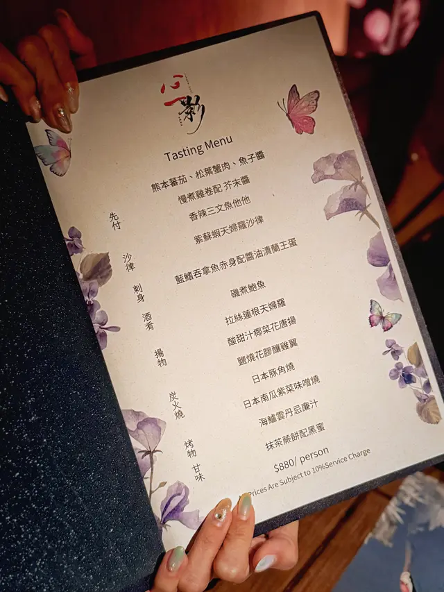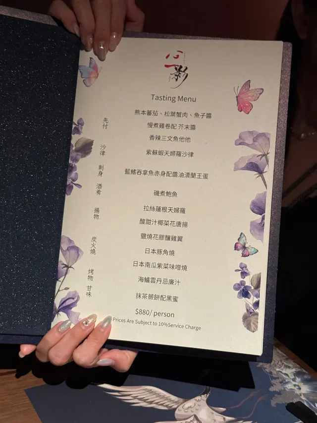 心一 · 影以「不旬不食」為旨,嚴選時令食材,呈現食材真味。餐廳涵蓋三大日菜文化:炭火燒鳥、Omakase及割烹,均由料理職人匠心演繹。另設私人貴賓房,配備獨立洗手間及高質卡拉OK,隱密而愉悅,適合派對相聚。食物:🍽️ Tasting Menu ($880)🥢 先付✨香辣三文魚他他:含豐富健康魚油的三文魚蓉中躍出一絲辛香。✨熊本蕃茄、松葉蟹肉、魚子醬:清甜透潤的熊本番茄上堆砌着細緻的松葉蟹肉與奢華的魚子醬,添上一抹海洋氣息。✨慢煮雞卷配芥末醬:啖啖肉!入口軟腍舒服。🥗 沙律✨紫蘇蝦天婦羅沙律:紫蘇蝦天婦羅輕盈酥脆,蝦鮮與紫蘇香清逸交織;包裹着香甜蜜瓜、蘿蔔絲的小卷,與本地番茄、沙律菜組成一幕清新及和諧的間場,為其後的濃味菜式作鋪墊。🐟 刺身✨藍鰭吞拿魚赤身配醬油漬蘭王蛋:魚身呈深邃的赤紅色,表面泛起油光,口感緊實潤澤,輕裹甘醇的醬油漬蘭王蛋汁,引出香滑鮮味。🍶 酒肴✨磯煮鮑魚:質感爽身彈牙,有嚼頭,亦不失柔潤感。🍤 揚物✨拉絲蓮根天婦羅:溫度恰好,輕咬開蓮根,甘潤微黏,拉絲綿延不斷,輕盈素雅。✨酸甜汁椰菜花唐揚:形似咕嚕肉,實則清雅開胃,明亮的酸甜汁與蔬菜蠻搭,且不膩口。🔥 炭火燒✨鹽燒花膠釀雞翼:油香脆皮下內有乾坤,滋補花膠藏鮮。✨日本豚角燒:脂香溫和,軟而不韌。✨日本南瓜紫菜味噌燒:甘甜惹味的原型食物,老少咸宜。🔥 烤物✨海鱸雲丹忌廉汁:海鱸魚皮被烤成微脆,肉質雪白濕潤,伴上奶香與海潮鹹鮮的雲丹忌廉汁,襯出魚之本味。🍮 甘物✨抹茶蕨餅配黑蜜:軟糯的抹茶蕨餅,微微回甘,伴上甜蜜的黑蜜、黃豆粉,典雅且不膩。…查看更多