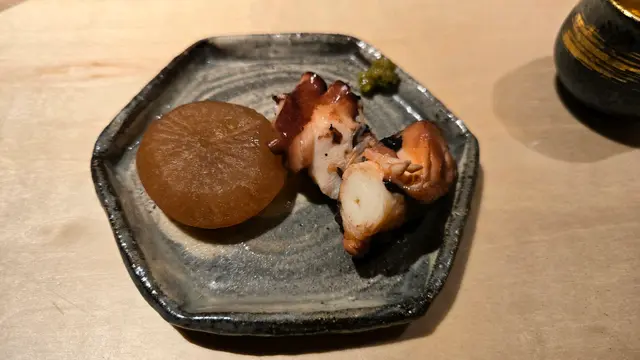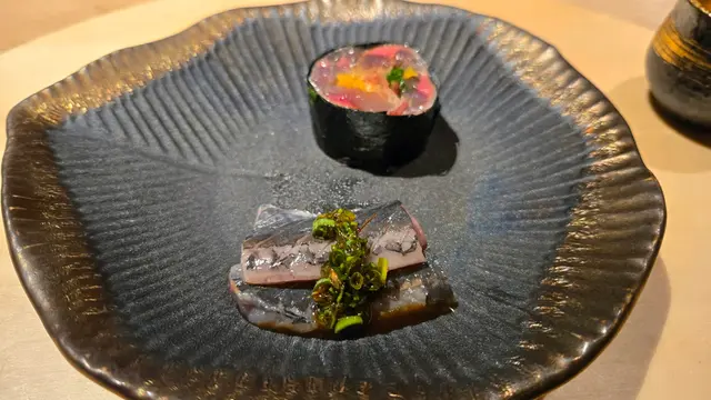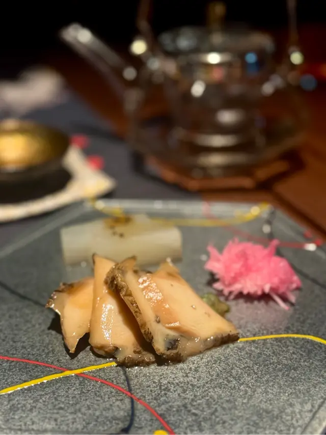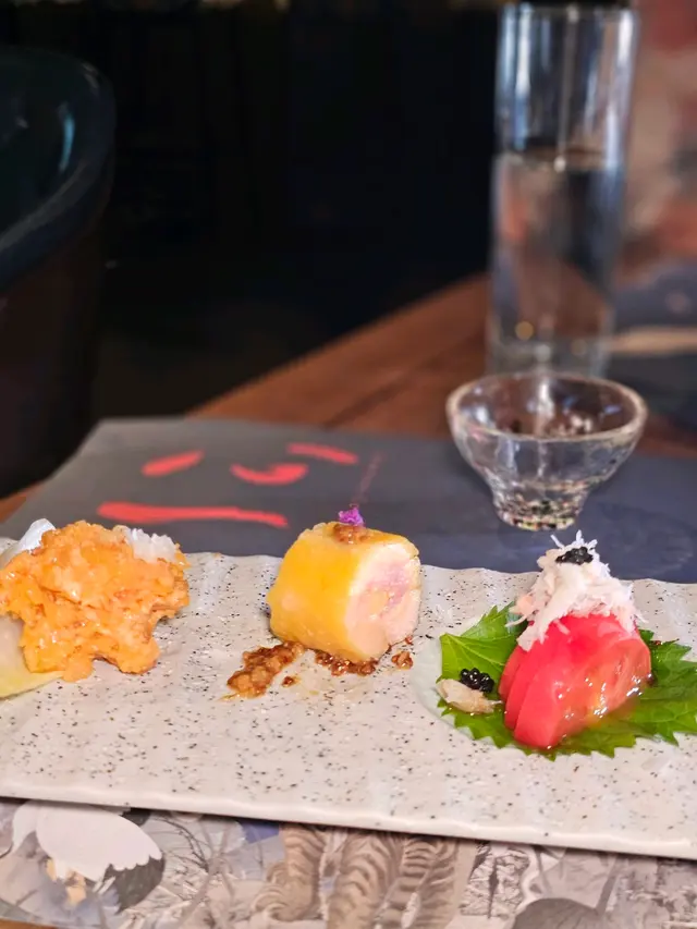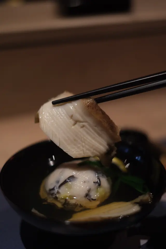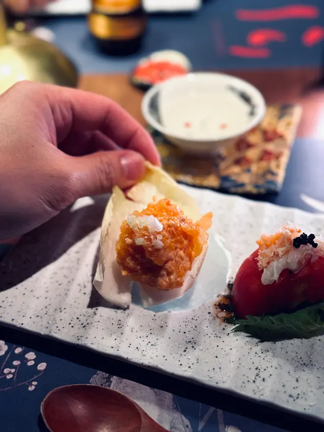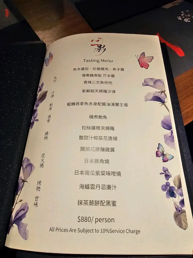 心一 · 影以「不旬不食」為旨,嚴選時令食材,呈現食材真味。餐廳涵蓋三大日菜文化:炭火燒鳥、Omakase及割烹,均由料理職人匠心演繹。另設私人貴賓房,配備獨立洗手間及高質卡拉OK,隱密而愉悅,適合派對相聚。食物:🍽️ Tasting Menu ($880)🥢 先付✨香辣三文魚他他:含豐富健康魚油的三文魚蓉中躍出一絲辛香。✨熊本蕃茄、松葉蟹肉、魚子醬:清甜透潤的熊本番茄上堆砌着細緻的松葉蟹肉與奢華的魚子醬,添上一抹海洋氣息。✨慢煮雞卷配芥末醬:啖啖肉!入口軟腍舒服。🥗 沙律✨紫蘇蝦天婦羅沙律:紫蘇蝦天婦羅輕盈酥脆,蝦鮮與紫蘇香清逸交織;包裹着香甜蜜瓜、蘿蔔絲的小卷,與本地番茄、沙律菜組成一幕清新及和諧的間場,為其後的濃味菜式作鋪墊。🐟 刺身✨藍鰭吞拿魚赤身配醬油漬蘭王蛋:魚身呈深邃的赤紅色,表面泛起油光,口感緊實潤澤,輕裹甘醇的醬油漬蘭王蛋汁,引出香滑鮮味。🍶 酒肴✨磯煮鮑魚:質感爽身彈牙,有嚼頭,亦不失柔潤感。🍤 揚物✨拉絲蓮根天婦羅:溫度恰好,輕咬開蓮根,甘潤微黏,拉絲綿延不斷,輕盈素雅。✨酸甜汁椰菜花唐揚:形似咕嚕肉,實則清雅開胃,明亮的酸甜汁與蔬菜蠻搭,且不膩口。🔥 炭火燒✨鹽燒花膠釀雞翼:油香脆皮下內有乾坤,滋補花膠藏鮮。✨日本豚角燒:脂香溫和,軟而不韌。✨日本南瓜紫菜味噌燒:甘甜惹味的原型食物,老少咸宜。🔥 烤物✨海鱸雲丹忌廉汁:海鱸魚皮被烤成微脆,肉質雪白濕潤,伴上奶香與海潮鹹鮮的雲丹忌廉汁,襯出魚之本味。🍮 甘物✨抹茶蕨餅配黑蜜:軟糯的抹茶蕨餅,微微回甘,伴上甜蜜的黑蜜、黃豆粉,典雅且不膩。…查看更多