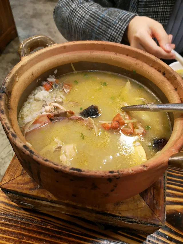 冬天到,食煲粥😋😋😋我地得兩個人,都忍唔住嗌左呢煲粥😂據說係招牌菜。佢嘅材料有爆膏膏蟹、嫩滑鮮蝦、鮮甜雞肉🦀🦐海鮮份量都唔少,啲雞仲幾多下,食極都仲有🐣 啲粥煲到好綿,質感同埋味道啱啱好😋食材好新鮮,真係好鮮味😚我地食到唔停口!$200,我覺得三四個朋友一齊食都夠食😆.另外,我地點左椒鹽九肚魚🐟外脆內軟好好味😛凍左都咁好食🥰生幾粒暗瘡都抵😂😂.我哋仲嗌咗碟通菜,但係炒得比較油~食完真係好飽,食得好滿足!查看更多