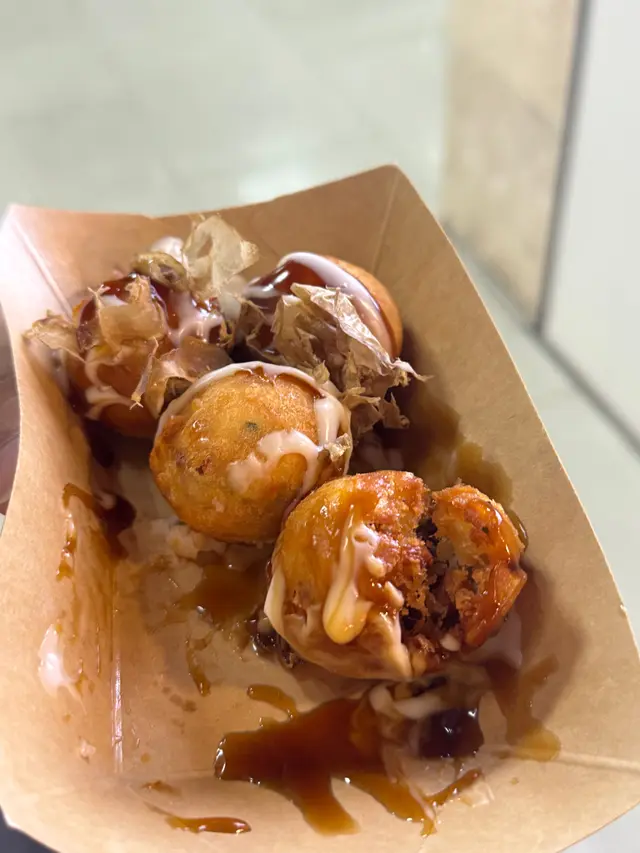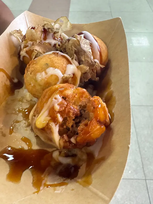 頓時失望咗。等咗幾分鐘就拎到小丸子,外皮偏硬,粉感較重,同一般嘅口感有啲落差,其中有一粒仲要裂開咗,入面嘅餡都炸到熟埋,味道偏鹹,面頭仲要冇紫菜碎,成個感覺完全同一般嘅章魚小丸子唔同