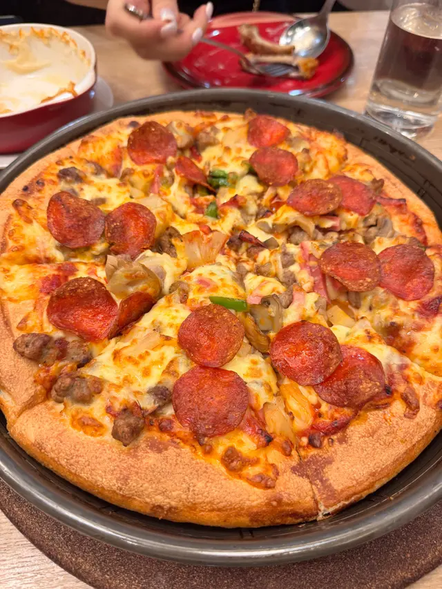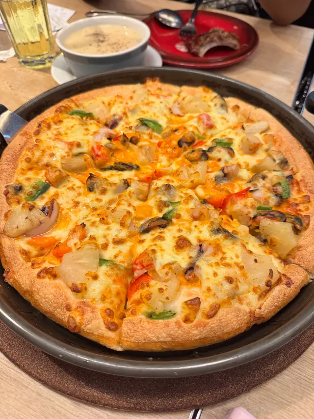 次次問小朋友想食咩佢都話要食Pizza特別係呢間Pizza Hut佢有個哥哥好鍾意所以今次想寫出嚟表揚吓千島海鮮pizza 👍🏼👍🏼👍🏼顧名思義千島醬底鬆口批底入面勁多海鮮大概有蝦蟹柳帶子青口魷魚仲有菠蘿青椒等等做點綴大量芝士回味無窮超級至尊pizza👍🏼👍🏼👍🏼蕃茄醬底鬆厚批有滿滿嘅肉粒辣肉腸火腿仲有洋蔥蘑菇青椒菠蘿點綴酸甜可口肉醬意粉👍🏼👍🏼👍🏼呢個意粉鋪滿肉醬上枱嘅時候仲熱辣辣好新鮮海鮮闊條麵👍🏼👍🏼👍🏼滿滿海鮮同醬汁啲闊條麵吸晒啲醬汁鍾意食白汁嘅人最愛嗰日其實食咗好多嘢但係大家都太肚餓好快清晒啲嘢食所以冇全部影相大家記得如果叫汽水飲可以免費refill一杯…查看更多