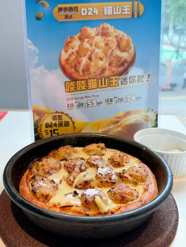 由細到大都鍾意食榴槤 嘅我最近行經❤️Pizza Hut 發現佢哋推出咗✨年度限定嘅一系列啖啖榴槤果肉美食😍全部以馬來西亞🇲🇾直送D24、貓山王製作款款都充滿榴槤果肉😋我梗係唔可以錯過🤩 即刻去嘆新品喇🍽️❣️啖啖貓山王迷你批🍕啖啖貓山王迷你批精選嚟自馬來西亞嘅貓山王榴槤成個迷你批面鋪滿香甜濃郁嘅榴槤吉士醬😍非常足料淨係聞到都已經香氣爆燈💡如果8 球迷你批滿足唔到你嘅話仲可以揀升級版 12 球 榴槤濃郁程度MAX!❣️D24千層酥皮撻千層蛋撻外層金黃酥脆 賣相吸引🤩打卡一流!口感鬆化 層次分明香滑內餡混合濃郁 D24 榴槤蓉食落滿口榴槤果香 又不失蛋香🥚奶香🥛甜度仲控制得啱啱好 唔會太甜🥰❣️貓山王泡芺酥皮夠晒鬆脆 咬開仲瞬間「榴」心💗每啖都係香濃綿密嘅榴槤果蓉吉士醬順滑口感中帶有絲絲果肉加上榴槤吉士醬 口感綿滑冰涼🧊絕對會令人一試愛上😍❣️D24 雲呢拿沙冰夏日☀️解暑 必點雲呢拿沙冰🍧頂層放咗一大球 D24 榴槤蓉同滿滿鮮忌廉😋沙冰🍧細緻綿密入面有足足 4 球 D24 榴槤果蓉🤩 真心大滿足D24 榴槤香甜 配合雲呢拿嘅奶香 滑順冰涼🧊飲落滿口「榴」香❣️D24榴槤果蓉如果想榴槤味再再再濃啲,加$15起就可以追加2球好creamy嘅D24榴槤果蓉,任你加喺迷你批或者各款甜品、飲品上面😋…查看更多