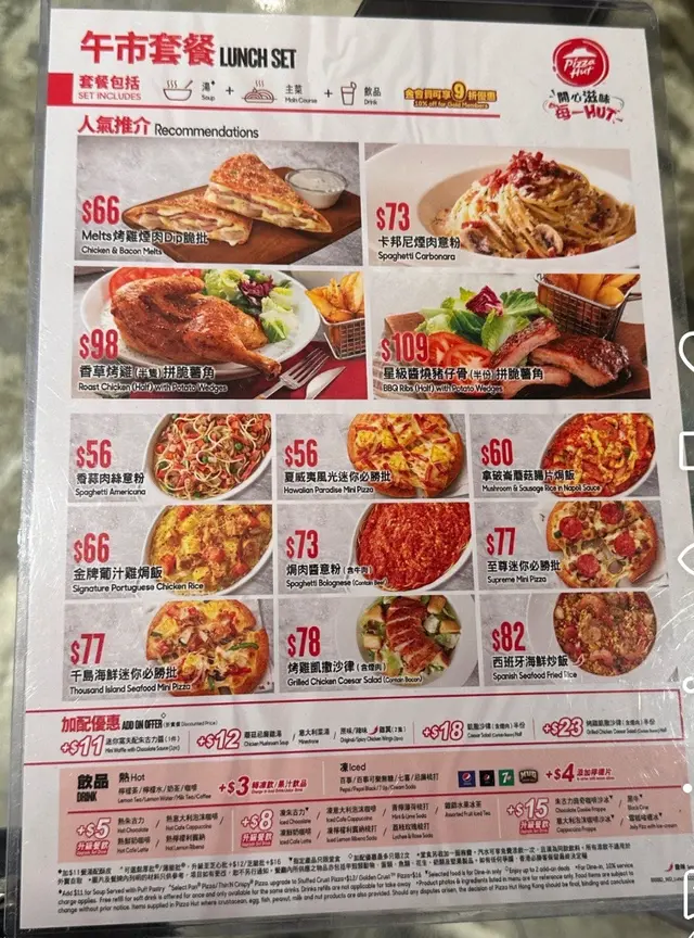 必勝客 (宇晴匯) (荔枝角) 網址: https://s.openrice.com/QrbS0Ada000 地址: 香港荔枝角深盛路9號宇晴匯2樓89-90號舖 電話: +852 22649119