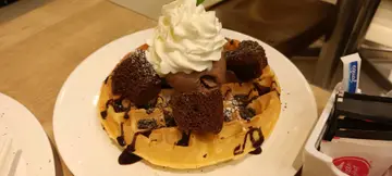 秘製葡式烤雞焗飯 - 雞肉鮮嫩,但份量比較少,葡汁不鹹,感覺健康一點。:( 迷你窩夫配朱古力醬 - 太少了啦 ~