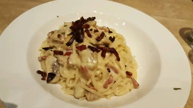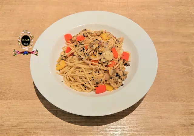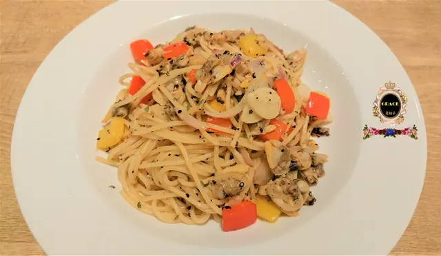 香蒜肉絲意粉 - 蒜蓉味香,肉質少乾,麵條彈牙,配料算多,顏色配搭佳。