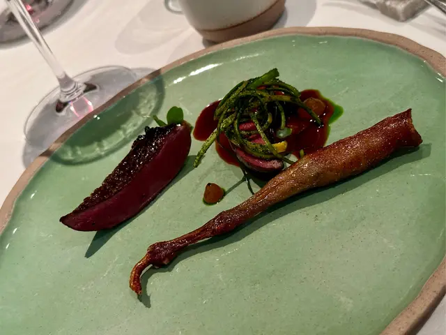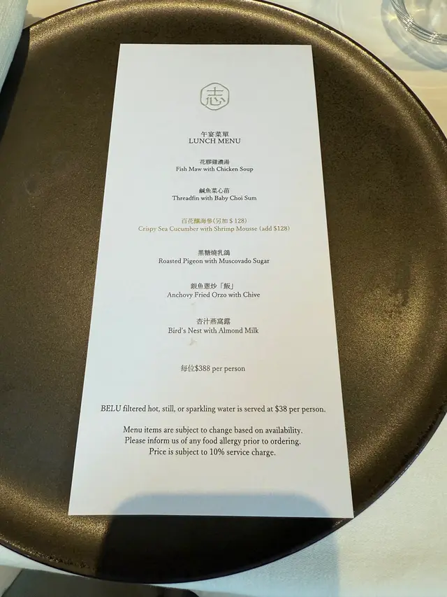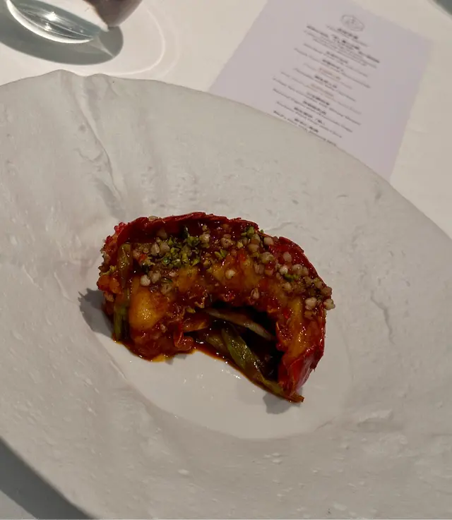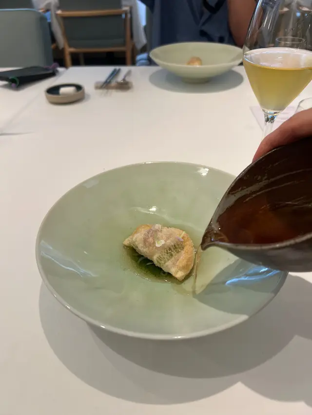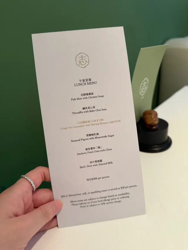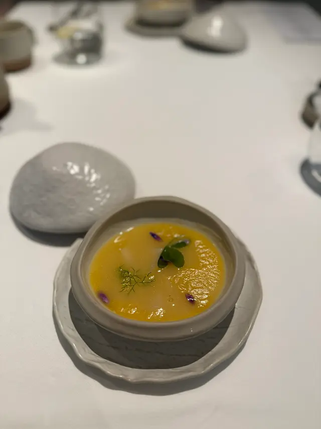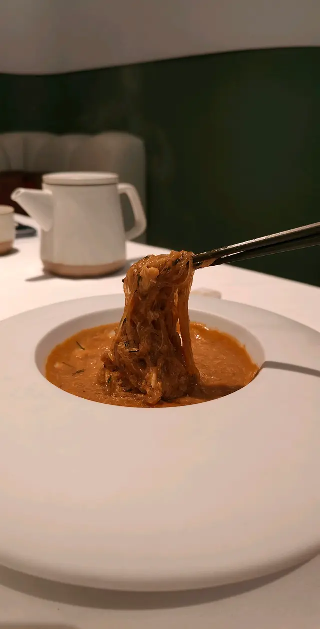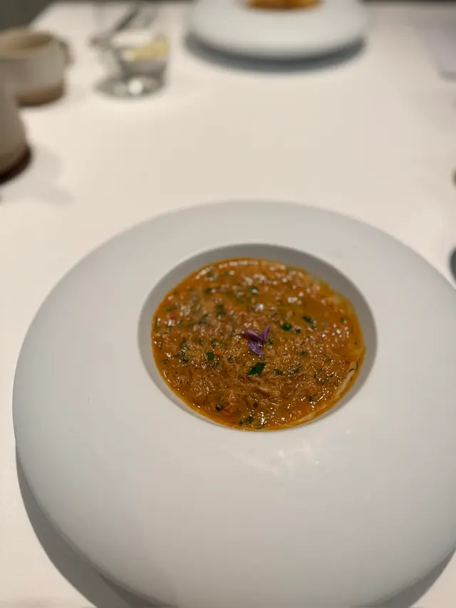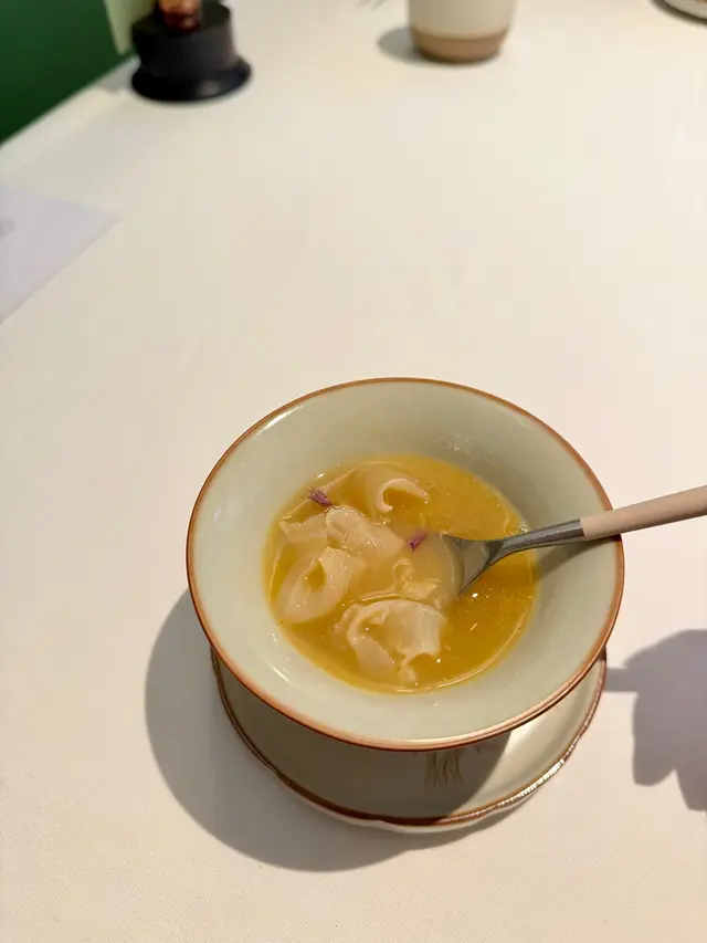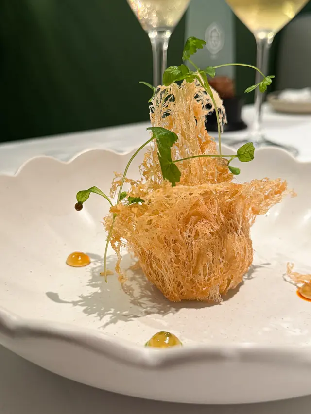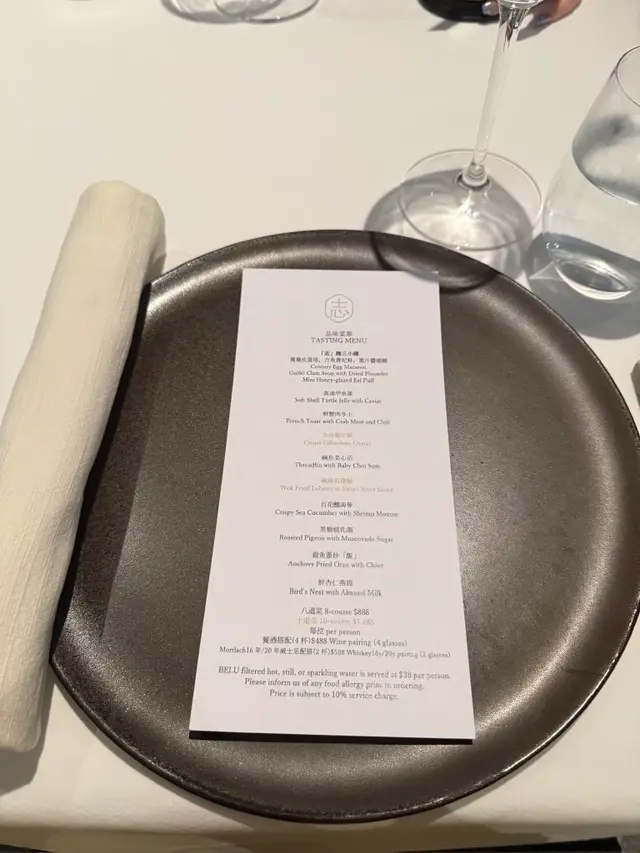 朋友生日,去咗食呢間位於中環擺花街嘅新派粵菜慶祝~餐廳2025年獲得 #米芝蓮推介 ,由兩位前米芝蓮餐廳大廚打造 中 x 法 創意料理,將傳統風味重新演繹,環境低調奢華,啱晒打卡同細味美食~ 我哋揀咗 10-course tasting menu ($1088/位),仲加配 4杯wine pairing($568/位),酒鬼mode全開!🍷 #志趣三小碟酸薑魚子塔。剁椒醉牡丹。蜜汁叉燒鳝我鍾意食個蜜汁叉燒鱔,個面係好似叉燒酥咁,但入邊係鱔~#蔥油蚌伴麵蚌好鮮甜!面有啲豆,質感似爆珠,個麵一咬就斷,質感好得意🍷 配酒:Restless River Ava Marie 2020#蟹肉乾撈燕龍蝦汁好香濃,唔小心就飲晒😌啖啖蟹肉燕窩,同頂個脆片撈埋食口感超正,🍷 配酒: Le Colombera Piercarlo Semino Derthona 2021#花螺釀鳳翼雞翼去骨釀入花螺同菜甫,表面風乾到脆皮,一咬爆汁勁Juicy#鮑魚雞濃湯濃湯用本地三黃雞+陳皮熬製,陳皮香氣撲鼻! 仲有大大隻鮑魚~#鹹魚菜心苗新鮮馬友鹹魚油香十足,用咗少少鹽醃,深綠色嘅,係用菜芯整嘅汁🍷 配酒:15年 #東趣花雕一斟完已經聞到超~香嘅花雕味!😍#梅菜煎龍蝦個梅菜好特別,仲有紫蘇花,更加香~加埋豉油王汁煎個龍蝦,好惹味,加埋一小球白飯,送飯一流!#茅台花香鴨首先食咗鴨胸先,上面鋪滿香草,鴨胸嫩滑,好食!另一邊係豬耳豬肉鴨肉整成嘅雲吞🍷 配酒: KÖNIGSBECHER Pinot Noir GG 2017#老菜脯煨飯以為係飯?原來係米型意粉嚟!口感特別,加埋菜脯好香!呢個「飯」有驚喜❤️#白蔗筍雪葩甜品以白蔗筍雪葩收尾,清甜冰涼,完美解膩~ 「志」將粵菜玩到出神入化,每道菜都有驚喜!米芝蓮推介絕對名不虛傳,適合紀念日或想試新派中菜嘅食客。體驗同食材質素對得住價錢,會想encore! …查看更多