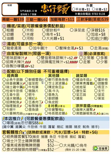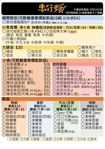 呢間車仔麵差唔多每個星期都食😂😂真係太高質✨✨餐廳環境:懷舊設計,有以前舊式既鐵閘,又加上新式既霓虹燈,而且座位都好闊落,仲有廁所👍🏻👍🏻✨食物方面:🫶🏻蒜香雞翼尖,潮汕牛肉丸,特長脆皮腸,幼麵今次選擇左沙嗲湯底,令到成碗麵都好入味,好香濃。雞翼尖亦都十分之出色同惹味,牛肉丸入邊醬汁十分多,脆皮腸長度十足,好似食極都食唔完咁😂😂😂✨瑞士雞翼瑞士雞翼汁十分出色,食落唔會覺得好甜,亦都冇遮蓋雞翼嘅味道👍🏻👍🏻👍🏻✨蒜泥白肉白肉嘅份量好多,而且蒜泥醬汁酸酸辣辣,食落好開胃😍😍😍✨腩汁娃娃菜配上佢哋既腩汁真係好特別😎而且份量夠哂多👍🏻👍🏻✨韮菜豬紅佢哋整得好好味😍車仔麵必叫😎😎而且勁大碗,又入味😋😋忠仔麵 (御海灣) (屯門)屯門海皇路23號御海灣地下5-7號舖…查看更多
