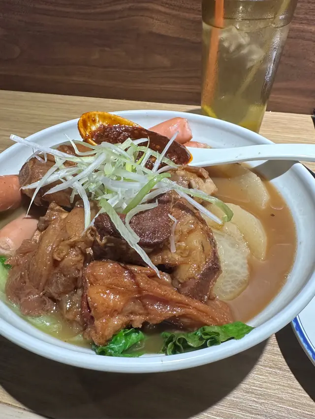 慢煮咸香脆鴨髀撈麵正👍🏻 LawrenceJaiJai等級42024-04-19122 瀏覽 關注 坐車返屋企時經過一間車仔麵店叫咩做「忠仔麵」,佢嘅懷舊裝修幾特別😍,我叫左[慢煮咸香脆鴨髀撈麵]、[蒜泥白肉]同埋叫多個[三款淨餸]嚟試吓。[慢煮咸香脆鴨髀撈麵] - 有兩款麵選擇:大光麵/烏冬,我揀咗大光麵,首先講吓隻鴨髀,好香鴨油味,皮香脆,少少咸味,其實有啲似油封鴨髀,不過就係用焗嘅方法,幾好食。另外會附一碗鴨油用嚟撈麵,味道唔太鹹,主要係鴨油香味,真係幾正😋。呢個麵餐會有杯飲品,我選擇+$6改飲凍檸樂,不過可惜嘅係⋯⋯可樂唔係樽裝,尤其係呢個環境下飲。[蒜泥白肉] - 首先份量好多,調味亦都唔錯,不過⋯⋯呢款蒜泥白肉係熱㗎,少咗白肉嘅爽,我自己就不太喜歡。[三款淨餸] - 首先我揀咗菜底、豬骨清湯同埋惹味甜辣汁,至於三餸我就揀咗牛筋腩、鮮蝦雲吞、關東煮蘿蔔。餐牌上寫住必食牛筋腩,我覺得正常,反而鮮蝦雲吞唔錯,關東煮蘿蔔係最出色,呢個我個人認為係必食,另外惹味甜辣汁亦都係非常出色,有啲似甜麵醬。…查看更多以上食評乃用戶個人意見 , 並不代表OpenRice之觀點。讚好分享慢煮咸香脆鴨髀撈麵正👍🏻 忠仔麵 (御海灣) https://s.openrice.com/QrbT0dgLI00檢舉 張貼 評分4味道4環境4服務4衛生5抵食用餐途徑堂食