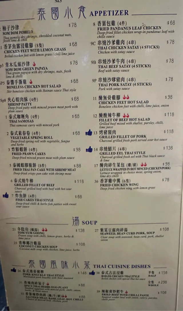 泰國菜餐廳,吸引一眾單車友光顧,假日尤期爆滿,建議預早訂座。餐廳供應多款泰國特色菜式,當中以串燒鱔片最受歡迎。