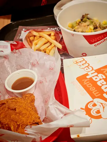 行完街唔知食啲乜嘢好,經過快樂蜂呢間炸雞,突然間好想食炸雞,同埋都想幫襯吓佢哋,所以就入咗去好耐冇食過,叫咗個臘味雞薯條同埋一杯齋啡,炸雞好好食好Juicy一啲都唔乾,薯條好好食,好食過麥記,下次再可以再食