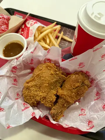 今日晏晝食咗Jolibee記得以前佢一嚟香港我就即刻排隊去食,炸雞真係相比起KXX 好食好多,佢嘅Fries 比麥XX好食勁多。啲嘢嚟到香港耐就會變質?最近出實習同同學食返呢一間野,我覺得真係難食咗勁多,佢蘑菇飯啲米變咗糊仔咁,啲汁又唔夠撈🙃啲雞啦雖然好鬼死脆,但係相較以前細隻咗同埋冇咁多肉汁。唯一不變嘅就係佢嗰啲蘑菇汁,呢一樣嘢值得一讚,照舊咁好食😊今日佢嘅嗰間灣仔分店仲要冇人執枱,非常之唔方便同埋唔衛生唉😮💨