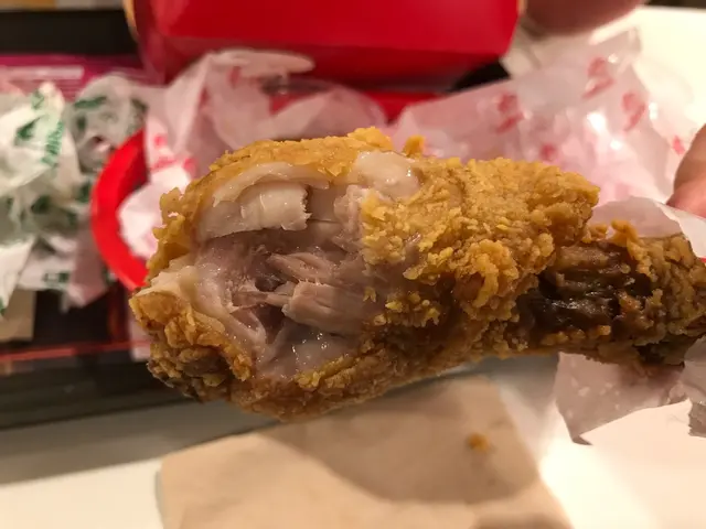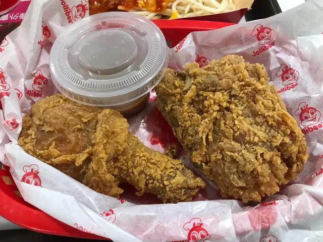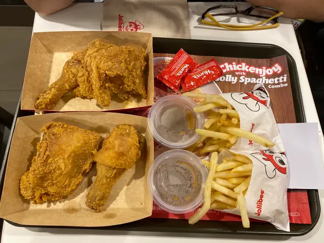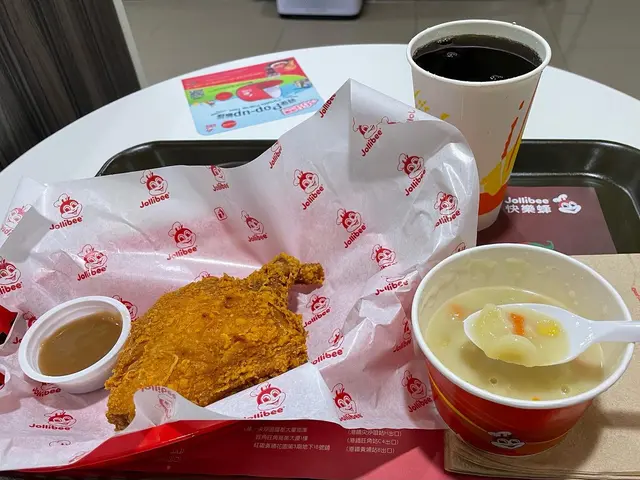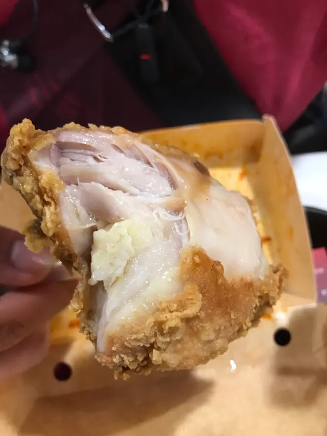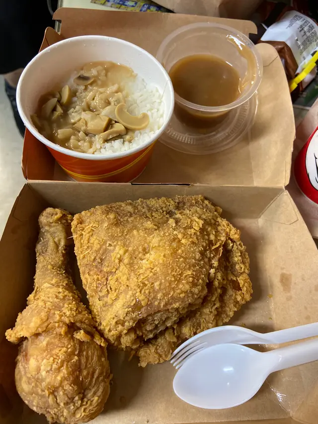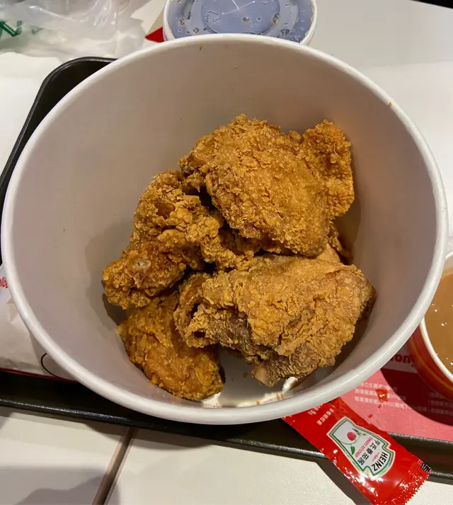炸雞快餐!有時候行葵廣,唔知買乜嘢小食掃街,都會有衝動想就咁買個快餐食就算。第一次試呢間快餐店,感覺都Okay。肉醬意粉配一件樂脆雞$45- 肉醬意粉嘅醬汁偏甜,冇新鮮蕃茄,好似食緊茄汁撈意粉咁,面頭灑上好多芝士,非常邪惡。平時食嘅肉醬意粉會係免治豬肉加牛肉,呢度用腸仔代替,變咗茄汁腸仔意粉。如果分量再多少少會更好。- 炸雞鎚入面都有肉汁,點上燒肉汁更加惹味,食咗少少炸粉雞皮,口感都好脆,唔錯嘅!