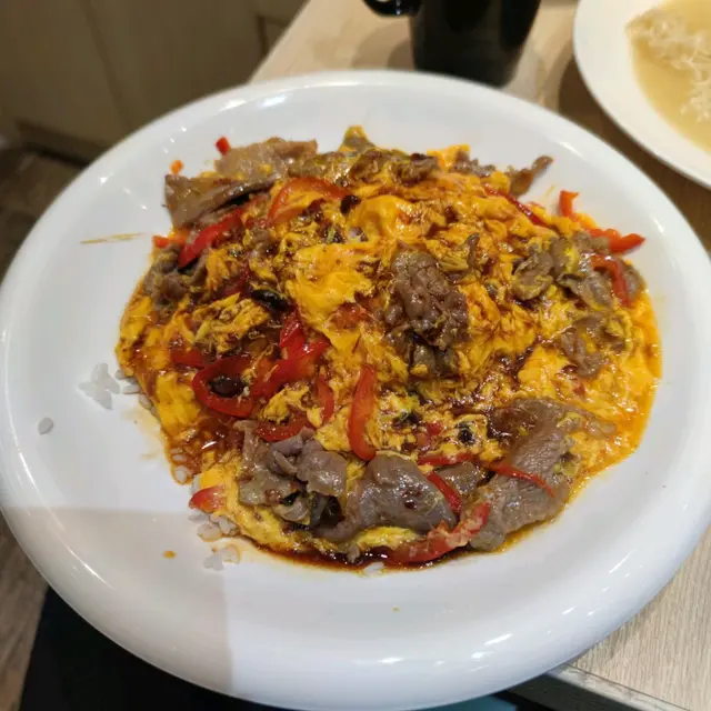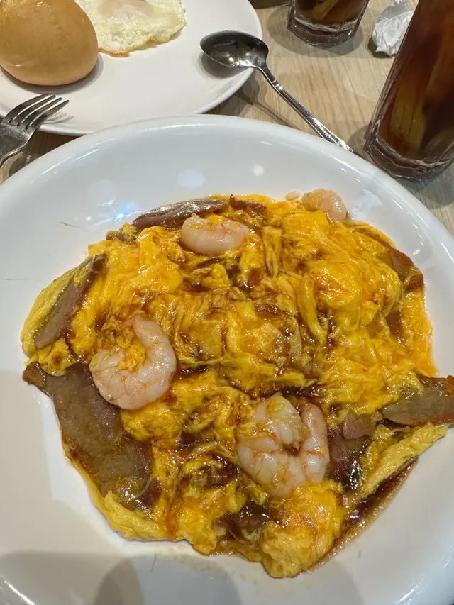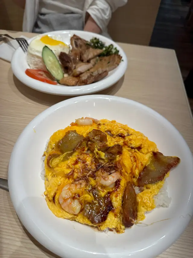 今日下晝嚟到上環度搵食,見到呢一間餐廳大排長龍,就決定入去試吓,而且佢哋點都非常方便!整體都唔錯!🔥滑蛋蝦仁叉燒飯(配秘製豉油):黯然銷魂升級版見到鄰枱阿叔連嗌兩日,終於明白呢個滑蛋蝦仁叉燒飯嘅魔力!蛋漿半凝固狀態完美包裹飯粒,蝦仁爽脆冇雪藏味,叉燒粒增加口感層次。畫龍點睛係店家特調豉油,帶淡淡甜香,同蛋香產生化學作用,食到最尾一粒飯都唔會膩。滑蛋水準:★★★★★ 驚喜位:豉油甜度剛好中和蛋腥味 建議:一定要撈勻先食!…查看更多