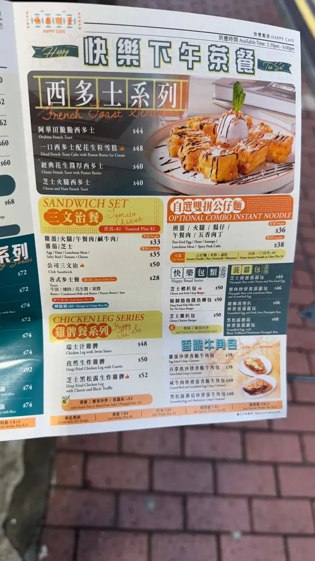 Chef Ecy’s Dining Experience:🥰 Food | Ambience | Service | Price | Easy Access | Wheelchair | Easy Parking🙂 😠 Pet Friendly | Restroom Cleanliness | Corkage Fee | Cake Cutting FeeThis cafe has 2 branches in Hong Kong. This one I went to is in Causeway Bay. It was recommended by an OL working nearby. The cafe is not big and has no restroom inside but they are at street level, so wheelchair has no concern. It is easy to access there by bus, minibus, tram or MTR. Get off at Causeway Bay MTR station Exit F2 and take 4min walk. If you drive, you can park in Lee Garden. This cafe was originated a bakery shop, so they make many Hong Kong style buns like 菠蘿包, 雞尾包, 蛋撻 etc etc… If you dine in, make sure you try their buns, they are so fresh and warm. I tried their all-day breakfast, it costs only HK$68 including drink. It includes black truffle mushroom omelette, bacon, deep fried sole filet, sausage, beans in tomato sauce, salad and a pineapple bun 菠蘿包. The portion is so big that I took it as both breakfast and lunch. The fish is very crispy and the fish meat is tender. The egg is so smooth and yummy! I don‘t quite like the sausage & the salad. All other items are great. It comes with a drink and I ordered the hot milk tea 港式奶茶. Taste is ok but I think the milk is too much, it can be improved. I tried their lunch before with an order of the the BBQ pork with scrambled egg rice. Wow, it was so good and tasty. BBQ pork is tender and the egg is so smooth with lots of spring onion. I like the flavor and texture of the whole dish. I seldom eat rice but surprisingly, I finished the whole dish of rice and all the pork & egg. Price performance is great… Please bear in mind they cannot bring in outside food nor drink to the cafe. Also, there is a minimum charge of HK$30 per person. …查看更多
