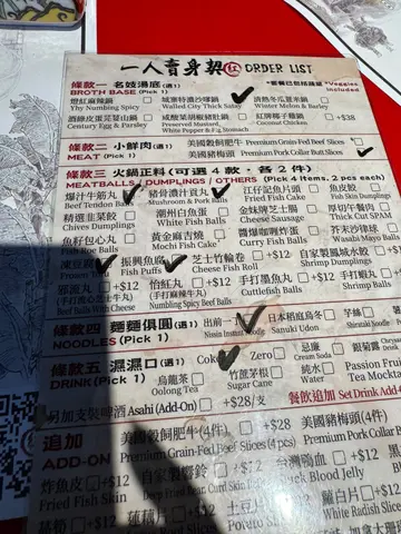 這次在怡紅院用餐,整體體驗非常愉快。體驗:首先,我們八人用餐,大枱很舒適。用餐時段是中午,一人一鍋的價錢是 $118起。一人一鍋感覺衛生。不用等位。餐廳的裝潢帶有濃厚的傳統中國風格,古典精緻的火鍋爐令人一入座便感受到濃厚的文化氛圍。食材豐富多樣,盤中擺放新鮮的肉片、丸子、豆腐和蔬菜,我選擇了出前一丁。讓人期待豐富的味覺享受。蔬菜清脆鮮嫩,肉片色澤誘人,搭配特製的醬料,味道鮮美,口感層次豐富。火鍋爐設計不僅美觀且實用,火力均勻且容易控制,使食材煮得恰到好處。服務員態度親切,反應迅速,讓整個用餐過程非常輕鬆愉快。最後,調味醬料的加入更提升了整體風味,使每一道食材都能呈現最佳狀態。總體來說,怡紅院是一家值得推薦的火鍋餐廳,適合與家人朋友聚餐,共享美好時光。湯底推介:沙嗲配料推介: 厚切午餐肉 (罪大惡極🤣)