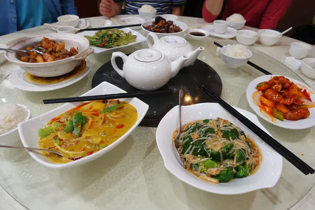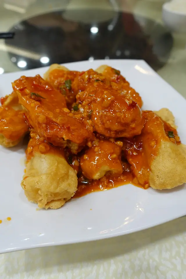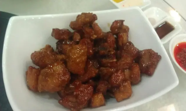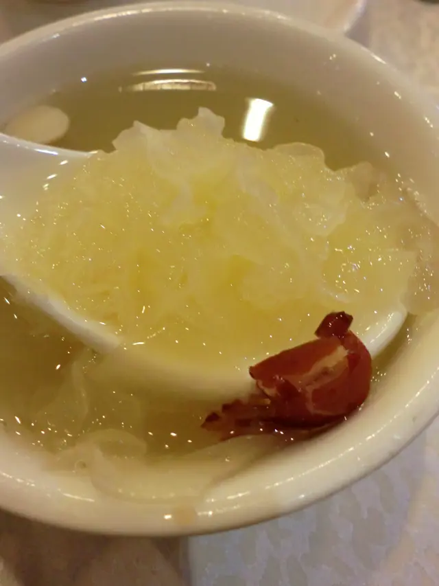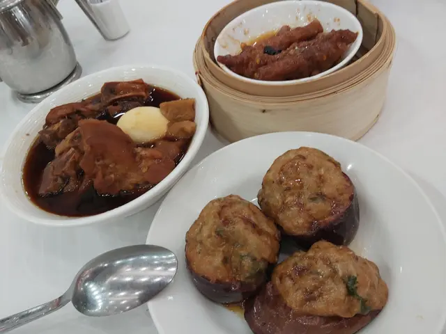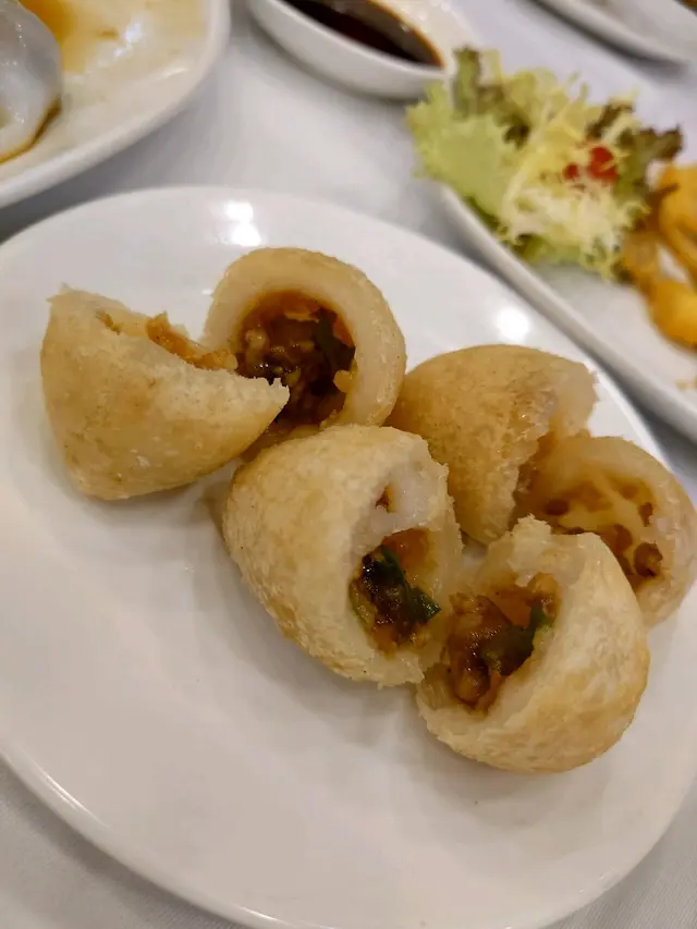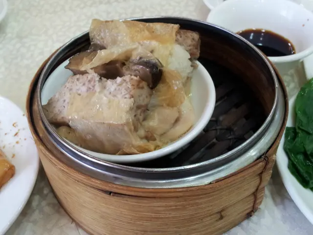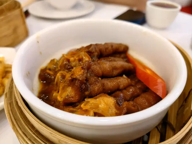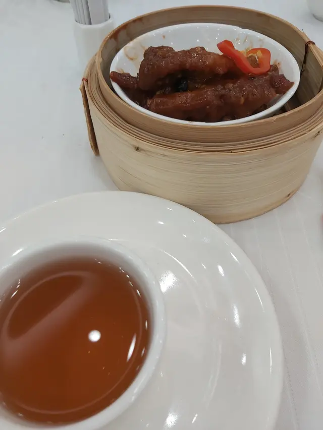 與會員朋友到體育遊樂會享用體育活動設施,到中午時間順便在遊樂會一樓的「怡逸軒」享用午飯,酒樓地方非常寬闊,服務也尚可。我們都吃得不多,點選兩款點心:豉汁蒸鳳爪保持一般水凖,尚算不錯。另一款是香煎釀茄子,香煎魚滑配豉油、茄子腍滑都很美味。還有白飯配甜醋豬腳薑,但是非常敗筆,白白的雞蛋像是未浸醋,甜醋很淡,色澤也非常淺,醋的質感很單薄,味道異常的淡茂茂,是我們從來未試過如此差勁的豬腳薑!人均消費$65。…查看更多