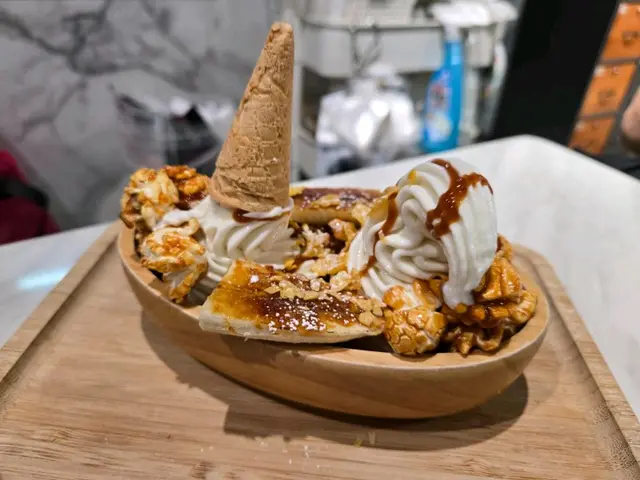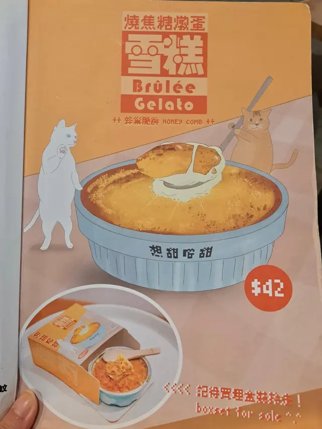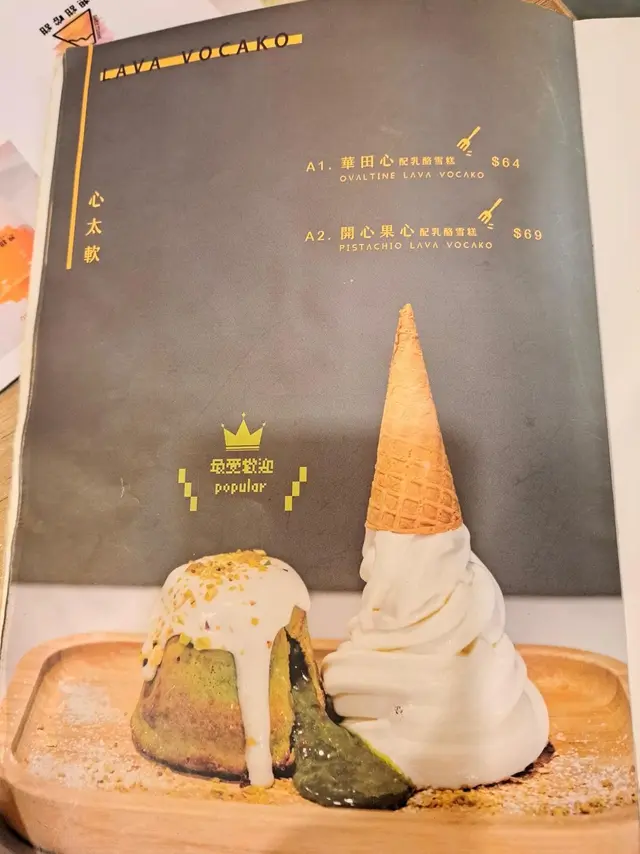 Visited this dessert shop in Kennedy Town, which I had bookmarked for a long time, with my friend after dinner. .We ordered the following desserts to share:-Pistachio Lava Vocako Topped with cheese foam and a generous amount of pistachio crunches, the lava cake was paired with frozen yogurt ice cream. The pistachio flavour was prominent, and the pistachio filling was runny and overflowed once we cut into the cake. The sourness of the yogurt balanced the sweetness of the cake. The exterior of the cake was slightly dry though. -Brulee Gelato The gelato had a golden crispy surface. We waited for a few mins for it to defrost, so we could enjoy its rich and creamy interior, which exuded an aromatic egg and vanilla fragrance..The dessert shop has quite a lot of cute illustrations and funny slogans. Its interior is comfortable and accommodating. It got more and more popular as the night progressed. …查看更多
