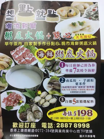 本來想用fushion來形容呢間餐廳,不過應該用現代茶樓來形容會更適合!餐廳以廣東茶樓精髓為主題——點心!即叫即蒸😍!更有現代港式茶記的精髓——奶茶咖啡檸茶檸水+炒粉面飯!晚上應該是做火煱為主!今日我就選擇左點心來做我既午餐😋燒賣,賣相不錯,味道更有驚喜👍🏻👍🏻😋蝦餃,皮較厚,味道無乜特別鳳凰糯米雞,即係蛋包糯米雞,沒有糯米香味,應該溝很太多白米,肉粒太少,蛋有「油益」味😖麻辣牛栢葉,唔用麻辣呢個名,會好啲,完全食唔到麻辣味。…Read More