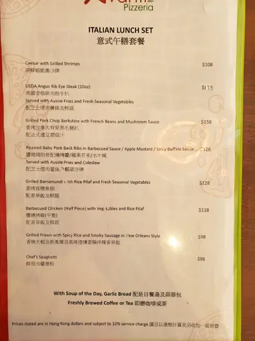 至於銀雪魚都好似一般嘅魚咁樣啦但係都好好味嘅. 整體嚟講服務質素, 價性比我係畀五粒星佢哋嘅... 但係就有少少都要負評下嘅佢哋嘅散叫餐單裏面太少食物選擇啦pizza或者意粉嗰啲太少啦數量. 變相我入到嚟我都會食套餐因為套餐裏面一個價錢包曬所有嘅嘢湯沙律主菜同甜品及餐飲.