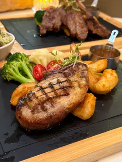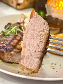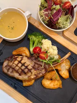 同FD去山林道揀咗呢間小店食飯~ 整體嚟講都幾relax,價錢相對親民~ 我哋點咗幾款主菜同甜品加熱飲,平均每人唔使兩百,真係抵食🐖豬扒薯菜配牛肝菌汁豬扒又幾厚喎! 煎得唔柴,外脆內嫩,咬落去有汁,配埋牛肝菌汁,菌味突出,平衡晒豬肉嘅油膩。薯條應該都係即製,夠晒脆口。又真係食得幾滿足🐏紐西蘭羊架用咗紐西蘭羊,烤得香脆。羊肉入口即化,肥瘦適中,唔會太膻,薄荷醬清新解膩,淋落去提升晒肉嘅鮮味。口感層次豐富,脆皮下係嫩肉。啱晒鍾意食羊嘅朋友🥤飲品方面- 玫瑰桃茶: 茶味清香配上桃子甜度自然,仲有玫瑰花瓣浮住,唔會太甜膩- 蜂蜜柚子茶: 正常發揮🍰紐約芝士蛋糕跟餐upgrade叫埋,芝士濃郁奶香,底層餅乾脆脆,甜度適中…查看更多