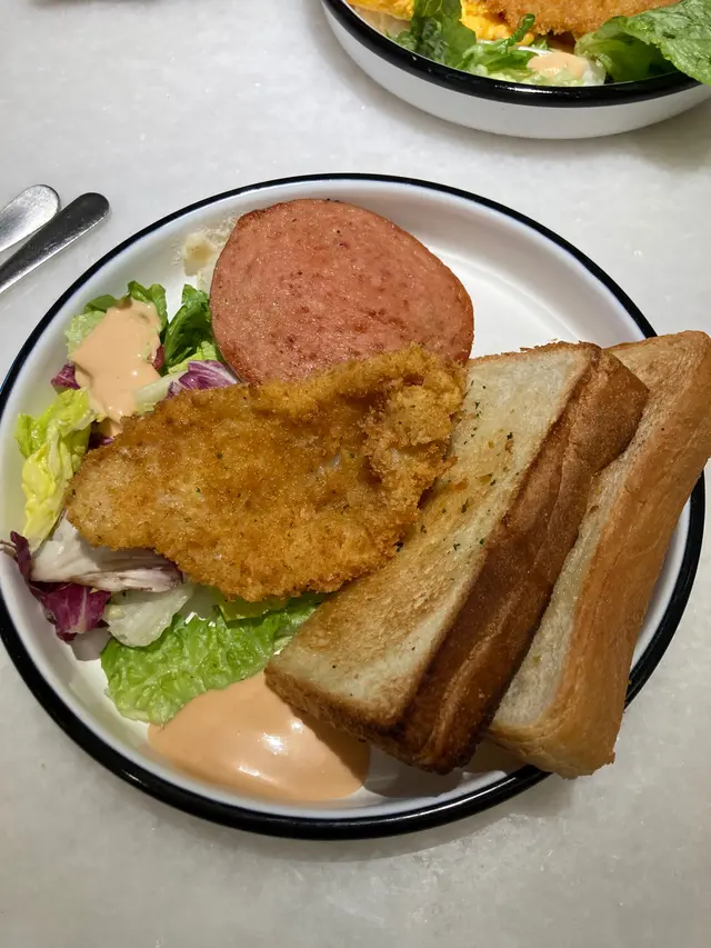 第一次係度食早餐,杯奶茶有驚喜,意外地好飲!雞扒餐同朋友牛扒餐都好食,雞扒幾滑,牛扒都幾嫩口,位置闊落,坐得都幾舒服。食完繼續坐係度傾計,d伙計都唔會話chur你,趕你地走交檯咁。幾好…查看更多