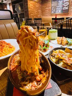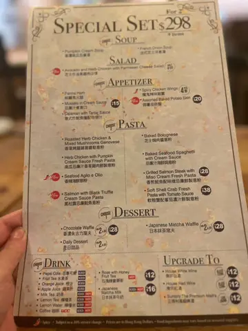 本以為當晚的聚會要取消了,幸好只是早上掛黑雨,下午雨勢已經減弱,我們的飯局可以照樣進行,實在太好了~朋友選了這間位於屯門市廣場的意粉狂熱用餐,地點對我來說實在便利,放工後只需乘搭數個西鐵站即可到達!餐廳以木系為主,配以柔和燈光,感覺幾舒服~焗薯皮拼盤一客薯皮拼盤已有三隻口味,啱哂心多多既人~ 三款口味分別為芝士煙肉、肉醬芝士& 咖喱芝士!! 個人幾喜歡肉醬芝士焗薯皮,酸酸甜甜的肉醬與薯皮相當夾!!法式芝士洋蔥湯朋友所選的洋蔥湯,賣相幾吸引,不過朋友話味道稍鹹~忌廉蘑菇湯熱辣辣的忌廉蘑菇湯,每一口都係濃稠的蘑菇碎,味道creamy,相當有水準!黑松露忌廉魚柳焗飯即叫即焗的黑松露忌廉魚柳焗飯,伴以新鮮番茄& 翠綠西蘭花,賣相實在吸引!魚柳嫩滑,亦有淡淡的黑松露香氣,喜歡黑松露的朋友,別錯過呢~軟殼蟹配明太子忌廉鮮製意粉即炸的軟殼蟹,酥脆可口; 配以鹹香的明太子,以及鮮製意粉,意粉很有嚼勁又夠creamy,整體很不錯呢!草莓茶梳打粉紅色的草莓茶梳打,面層有不少士多啤梨肉作裝飾,酸酸甜甜又夠氣,個人很喜歡呀!柚子蜜梳打友人所選的柚子蜜梳打,夏天喝相當適合,亦很解膩呢!多謝朋友帶我到來用餐,餐廳除了地點便利外,食物也不俗,而且CP值高,有機會都會再來用膳呢!屯門屯隆街2號屯門時代廣場北翼L2樓46號舖…查看更多
