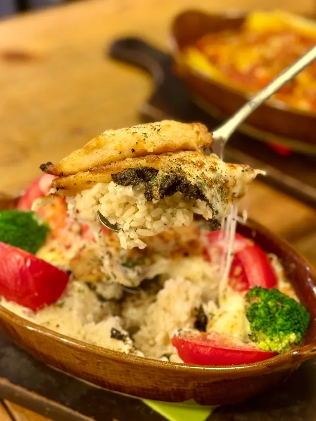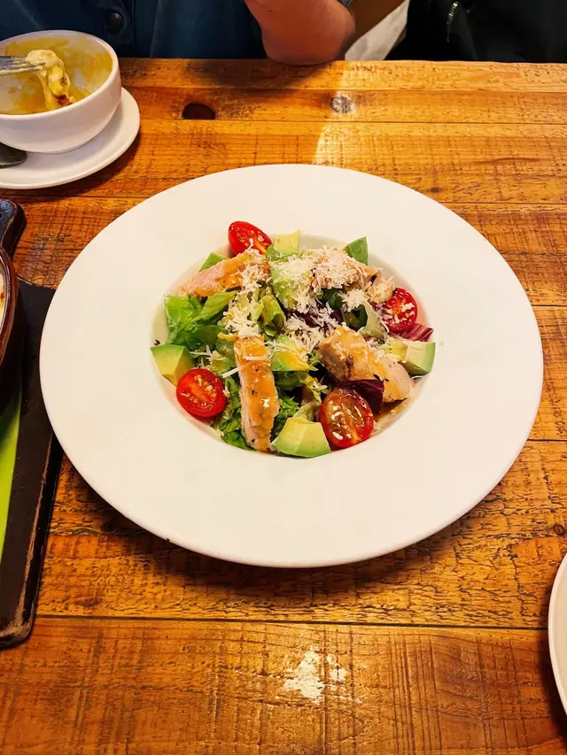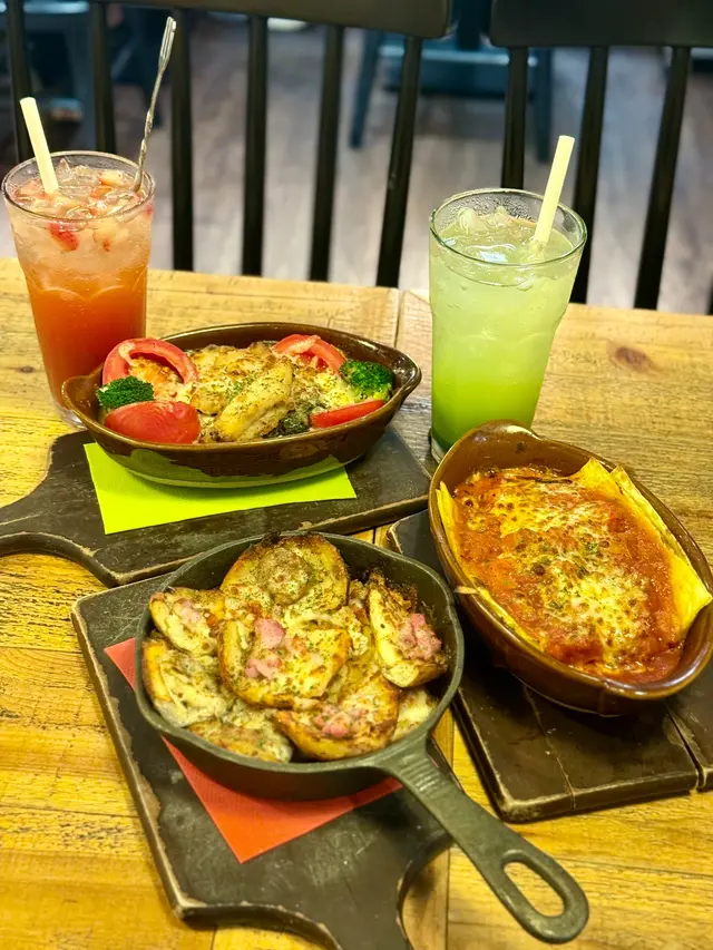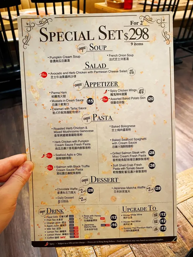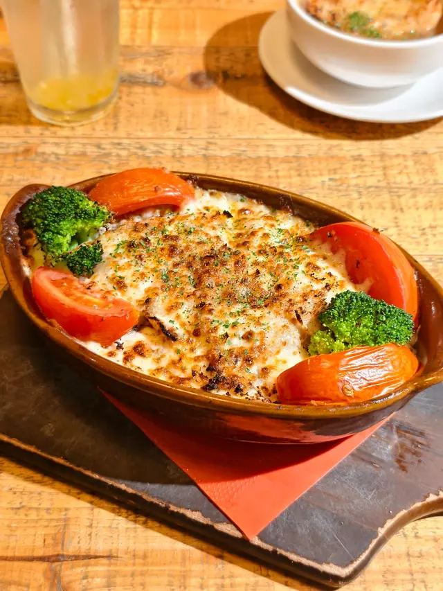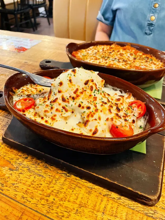 這次與朋友到訪這間西餐廳,一踏入店內便感受到輕鬆雅緻的氛圍。卡位設計舒適寬敞,椅墊柔軟有承托力,背板高度足以提供私隱感。燈光溫暖柔和,環境整潔,空間寬敞,整體給人一種輕鬆不拘束的感覺,是適合聚會或慢慢享受一餐的地方。前菜方面,我們先品嚐了香濃南瓜忌廉湯。湯身濃稠幼滑,帶天然南瓜的甜味與奶香,口感溫暖舒心,是一道相當出色的開胃湯品。另一款法式芝士洋蔥湯則味道更深層,洋蔥熬得軟嫩甘甜,湯底濃郁不膩,加上芝士,既香口又富層次,是喜歡法式風味的朋友不可錯過的一道。凱撒沙律(半份)則以清爽亮相,沙律菜新鮮脆口,凱撒醬調得濃淡適中,芝士香氣突出,配合香脆麵包粒,簡單卻很耐吃,清新之餘也能平衡後續主菜的厚重感。飲品方面,玫瑰蜂蜜果茶香氣自然,玫瑰味清雅不造作,入口帶微甜,茶香與果香相互平衡,是很治癒的一杯茶。而凍奶茶茶味與奶味比例恰好,香濃順滑,甜度適中,冰度控制得宜,是喜歡港式口味的客人會滿意的選擇。主菜部分,芝士焗肉醬意粉令人印象深刻。意粉煮得軟硬適中,肉醬帶濃厚的番茄與肉香,與焗得拉絲的芝士完美融合,每一口都充滿濃郁而舒適的味道。另一道黑松露忌廉魚柳焗飯則更顯高貴氣息,忌廉醬香滑不膩,黑松露味道馥郁卻不搶味,魚柳細嫩且與飯粒相當合拍,是一道令人會想回味的菜式。焗薯皮拼盤金黃香脆,外層微焦帶香,內裡軟綿細滑,每口都充滿濃郁薯香。搭配蘸醬,讓味道更添變化。份量充足,無論分享或獨享都適合,是一款簡單卻令人回味的小食。最後的是日甜品蛋糕為整餐畫上甜美句號。蛋糕質地鬆軟,甜度控制得宜,不會過膩,作為結尾剛剛好。總結而言,這間餐廳無論環境、服務還是菜式質素都相當穩定,適合三五知己相聚、悠閒用餐,值得再次光顧。…查看更多