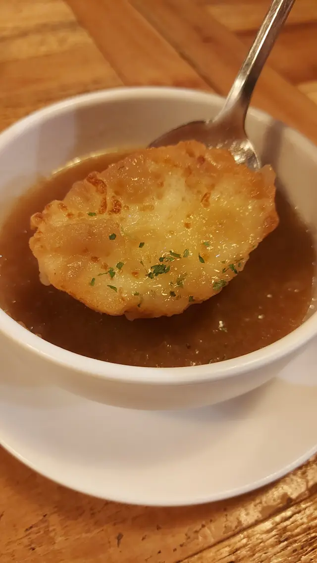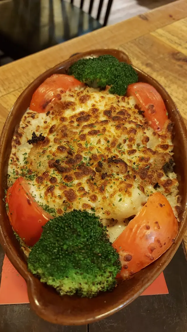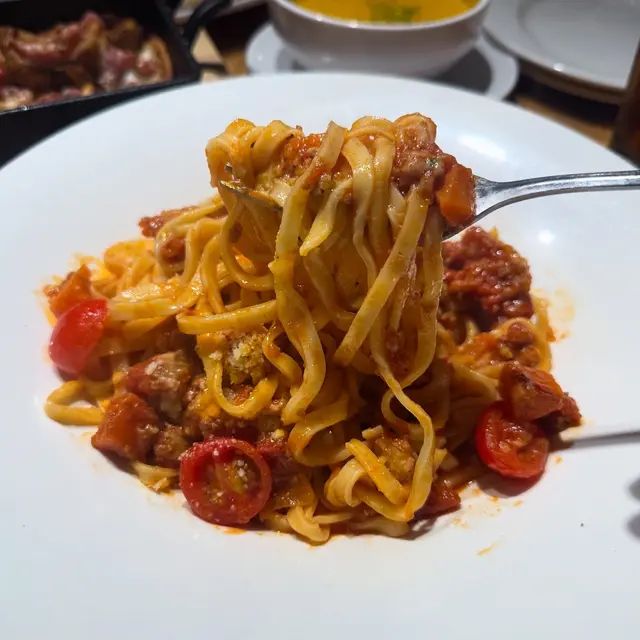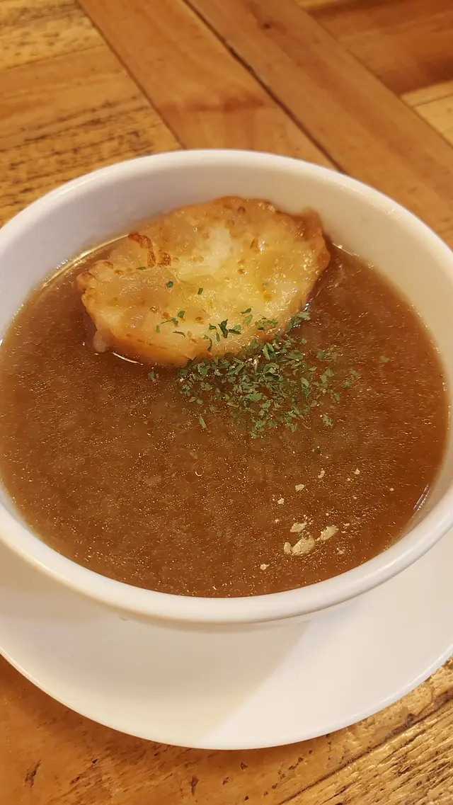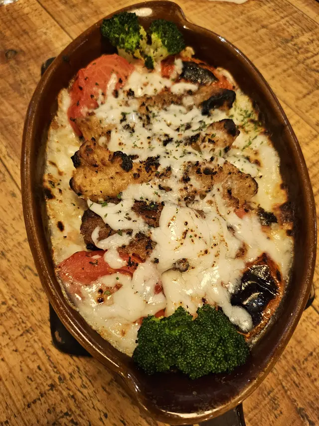 這次與朋友到訪這間西餐廳,一踏入店內便感受到輕鬆雅緻的氛圍。卡位設計舒適寬敞,椅墊柔軟有承托力,背板高度足以提供私隱感。燈光溫暖柔和,環境整潔,空間寬敞,整體給人一種輕鬆不拘束的感覺,是適合聚會或慢慢享受一餐的地方。前菜方面,我們先品嚐了香濃南瓜忌廉湯。湯身濃稠幼滑,帶天然南瓜的甜味與奶香,口感溫暖舒心,是一道相當出色的開胃湯品。另一款法式芝士洋蔥湯則味道更深層,洋蔥熬得軟嫩甘甜,湯底濃郁不膩,加上芝士,既香口又富層次,是喜歡法式風味的朋友不可錯過的一道。凱撒沙律(半份)則以清爽亮相,沙律菜新鮮脆口,凱撒醬調得濃淡適中,芝士香氣突出,配合香脆麵包粒,簡單卻很耐吃,清新之餘也能平衡後續主菜的厚重感。飲品方面,玫瑰蜂蜜果茶香氣自然,玫瑰味清雅不造作,入口帶微甜,茶香與果香相互平衡,是很治癒的一杯茶。而凍奶茶茶味與奶味比例恰好,香濃順滑,甜度適中,冰度控制得宜,是喜歡港式口味的客人會滿意的選擇。主菜部分,芝士焗肉醬意粉令人印象深刻。意粉煮得軟硬適中,肉醬帶濃厚的番茄與肉香,與焗得拉絲的芝士完美融合,每一口都充滿濃郁而舒適的味道。另一道黑松露忌廉魚柳焗飯則更顯高貴氣息,忌廉醬香滑不膩,黑松露味道馥郁卻不搶味,魚柳細嫩且與飯粒相當合拍,是一道令人會想回味的菜式。焗薯皮拼盤金黃香脆,外層微焦帶香,內裡軟綿細滑,每口都充滿濃郁薯香。搭配蘸醬,讓味道更添變化。份量充足,無論分享或獨享都適合,是一款簡單卻令人回味的小食。最後的是日甜品蛋糕為整餐畫上甜美句號。蛋糕質地鬆軟,甜度控制得宜,不會過膩,作為結尾剛剛好。總結而言,這間餐廳無論環境、服務還是菜式質素都相當穩定,適合三五知己相聚、悠閒用餐,值得再次光顧。…查看更多