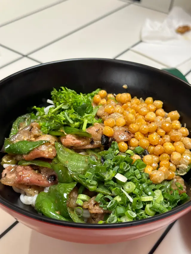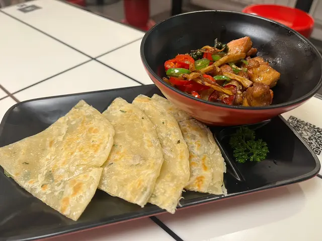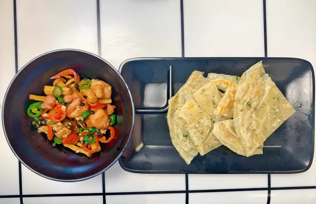 懷舊蔥油餅配藤椒野菌雞粒