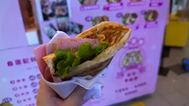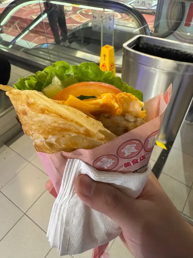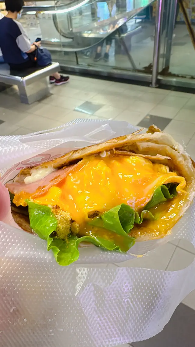 商場本身就係掃街天堂,舖頭密密麻麻,週末人流勁多。粉紅色招牌好搶眼,主打台式手抓餅,即叫即整,熱辣辣出爐,香味四散,仲係葵廣掃街界嘅人氣之選。🍴火腿雞蛋煙肉手抓餅即叫即煎,餅皮煎到酥脆,咬落去真係有「索索聲」!入面餡料超足,煙肉鹹香、火腿厚身、雞蛋半熟滑溜,三重口感夾埋一齊好邪惡但又唔會太膩。餅皮唔會太厚,啱啱好包住晒啲餡,食落層次感好豐富。手抓餅香脆足料,價錢親民($30左右),食完一件已經好滿足。#葵芳美食 #慧食貓 #手抓餅 #掃街推介 #葵涌廣場查看更多