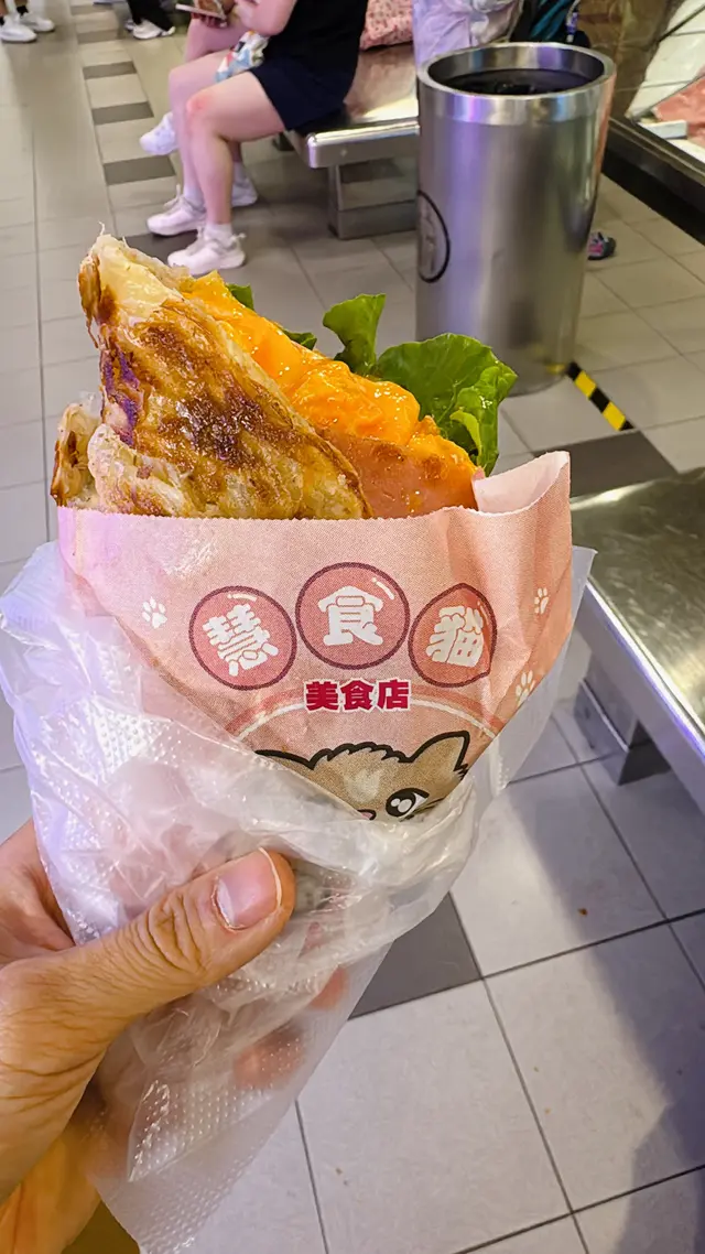 提到食手抓餅,相信大家都對慧食貓唔陌生,除咗葵廣,旺中都有分店㗎💖F. 火腿雞蛋芝士豬柳手抓餅🫓($31)一如既往,因為即叫即整,一拎上手熱辣辣,記得唔好太心急,即刻擺入口食,好易辣親😂手抓餅好脆,餅皮嘅厚度啱啱好,唔會食到成口皮,入面亦都非常足料,啖啖都可以食到配料🤤 除咗佢寫嘅火腿、雞蛋、芝士、豬柳配料,仲食到有蕃茄🍅同生菜🥬 感覺可以中和到豬柳同火腿嘅濃味,呢個配搭啱啱好👍🏻今次嚟葵廣食完呢個手抓餅已經滿足咗一半😋查看更多