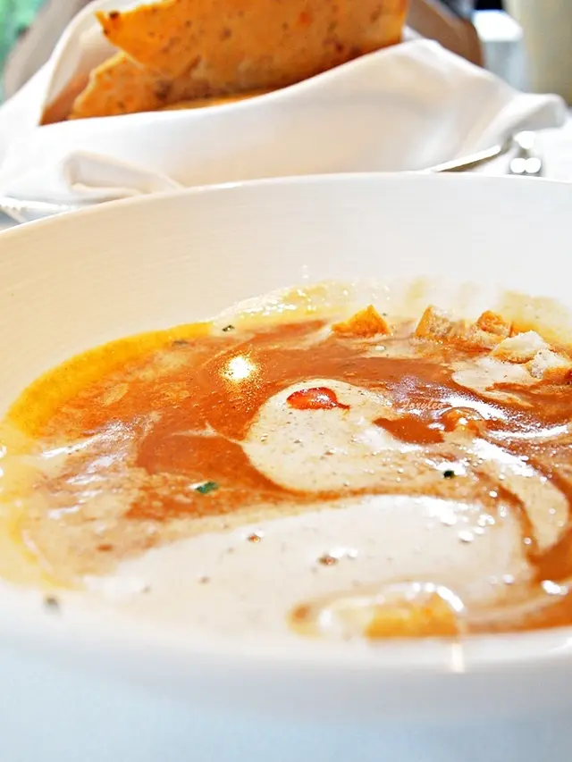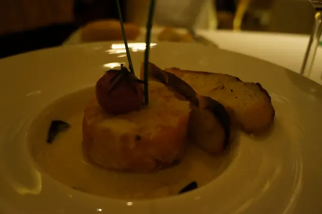 前排係電視機睇到介紹用干邑煮嘅龍蝦湯一直記住要黎呢間餐廳今次終於可以試啦😁一坐低我地就問可唔可以轉window sit不過佢地一口拒絕其實我覺得如果咁早段時間(7:00pm)得兩、三枱人又唔好好忙用啲咁嘅態度答客人令我覺得佢地好似無一般酒店既服務態度😔😞問下啫我夠估到比人book唒喇問下之嘛鬼死咁惡😣先講個包喇有個似豬或者鴨肝嘅醬同牛油雖然無物突別但配酒都唔錯!之後點左個配到紅酒嘅鵝肝拼盤,有煎鵝肝、同兩種鵝肝醬!不過依家諗返唔知係米睇漏眼應該可能或者係鴨肝因為好so㗎!到我期待今日主角嘅龍蝦湯啦!知係電視講得誇定我心情被影響左呢一啲都唔覺得咁出色lo、只可以話比某啲餐廳好小小啫!哼!之後求其叫左個藍青口同唔記得係咩luuu到最後呢碟腥到我要細細聲猜👋✌✊輸左食嘅唔知咩嘢真係腥到不得了,好似話係雞嘅好特別嘅部份、味道好似雞精架😒我只係勉強食左幾粒合桃咋!陰公…查看更多