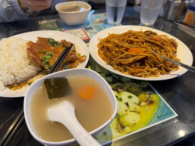 洋蔥汁雞扒飯、蕃茄豬潤通粉