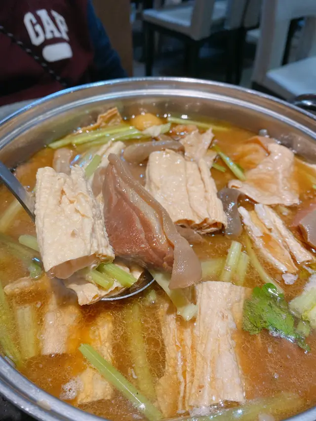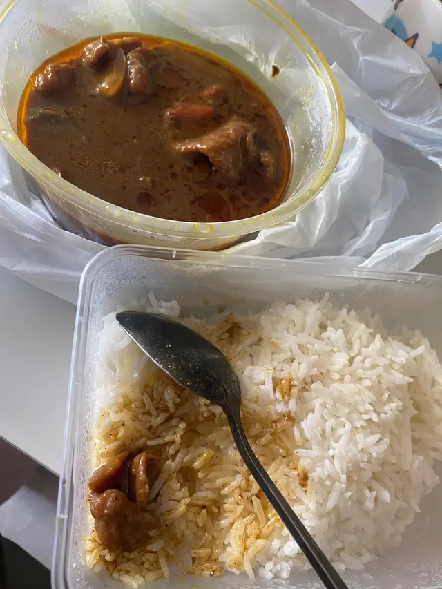 🍚 *主菜:白飯配肉排*這道菜的焦點是那塊煎或炸得恰到好處的肉排,表面微焦,淋上醬汁再撒上青蔥,香氣撲鼻。搭配白飯,既能吸收醬汁,又能平衡油脂,是一道經典的日式或台式便當風格。🍜 *湯品:清湯配海帶與蔬菜*湯色清澈,是以昆布或蔬菜熬煮的高湯,加入海帶和胡蘿蔔片,清爽解膩。白色湯匙點綴其中,讓整體視覺更乾淨雅緻。🍝 *炒麵:蔬菜與肉絲炒麵*炒麵色澤誘人,麵條油亮不黏,配料豐富,有胡蘿蔔、青菜與肉絲,還加入了醬油或蠔油調味,香氣十足。那片胡蘿蔔切片像是畫龍點睛,增添色彩與口感。…查看更多